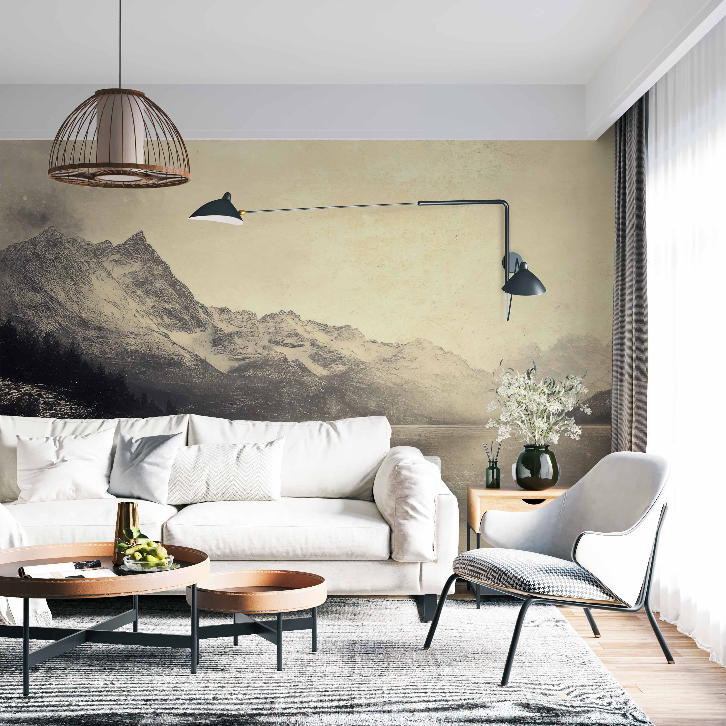 Laissez-vous transporter par "Voyage au cœur des pins", un papier peint panoramique forêt brumeuse, entre poésie et sérénité.