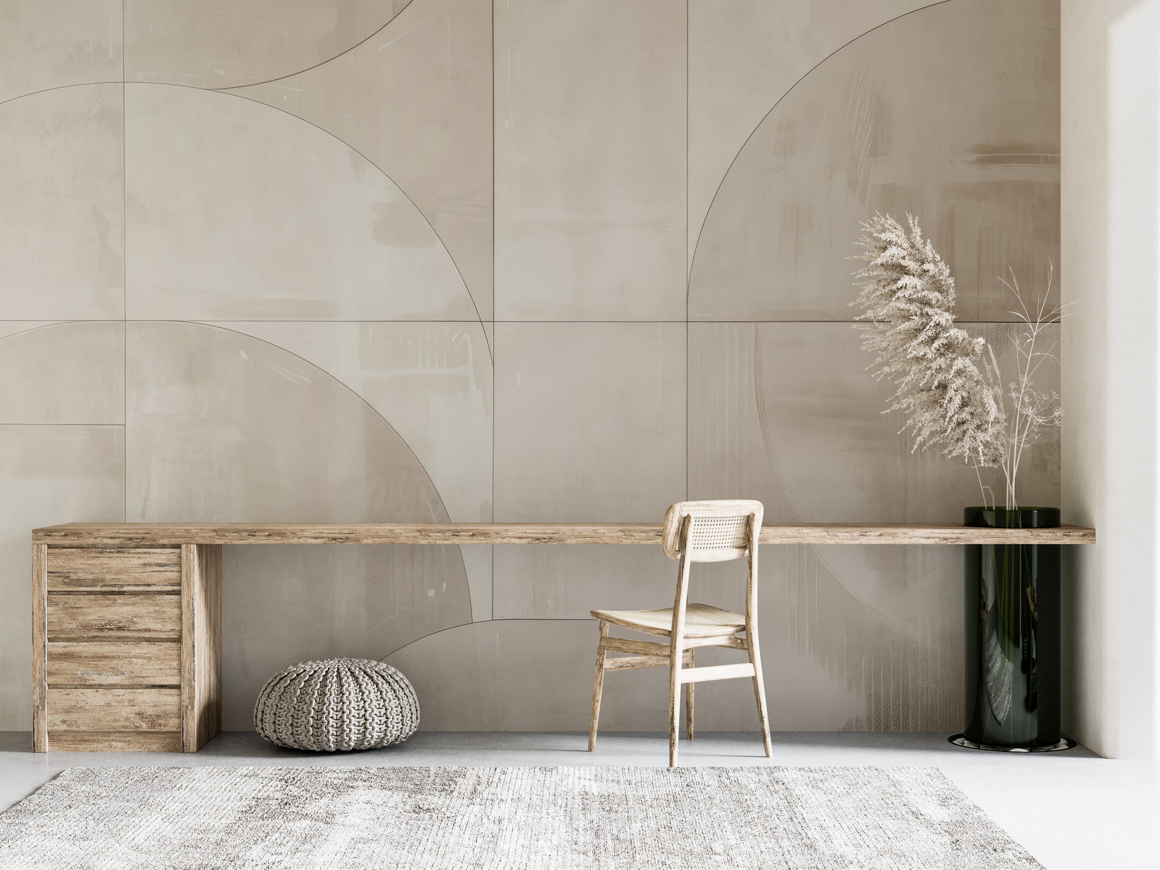 Transformez votre espace avec "Ondulations Argentées" et laissez-vous emporter par la douceur de ses motifs apaisants. Parfait pour les salons, chambres et bureaux qui nécessitent une touche de sérénité et de sophistication.