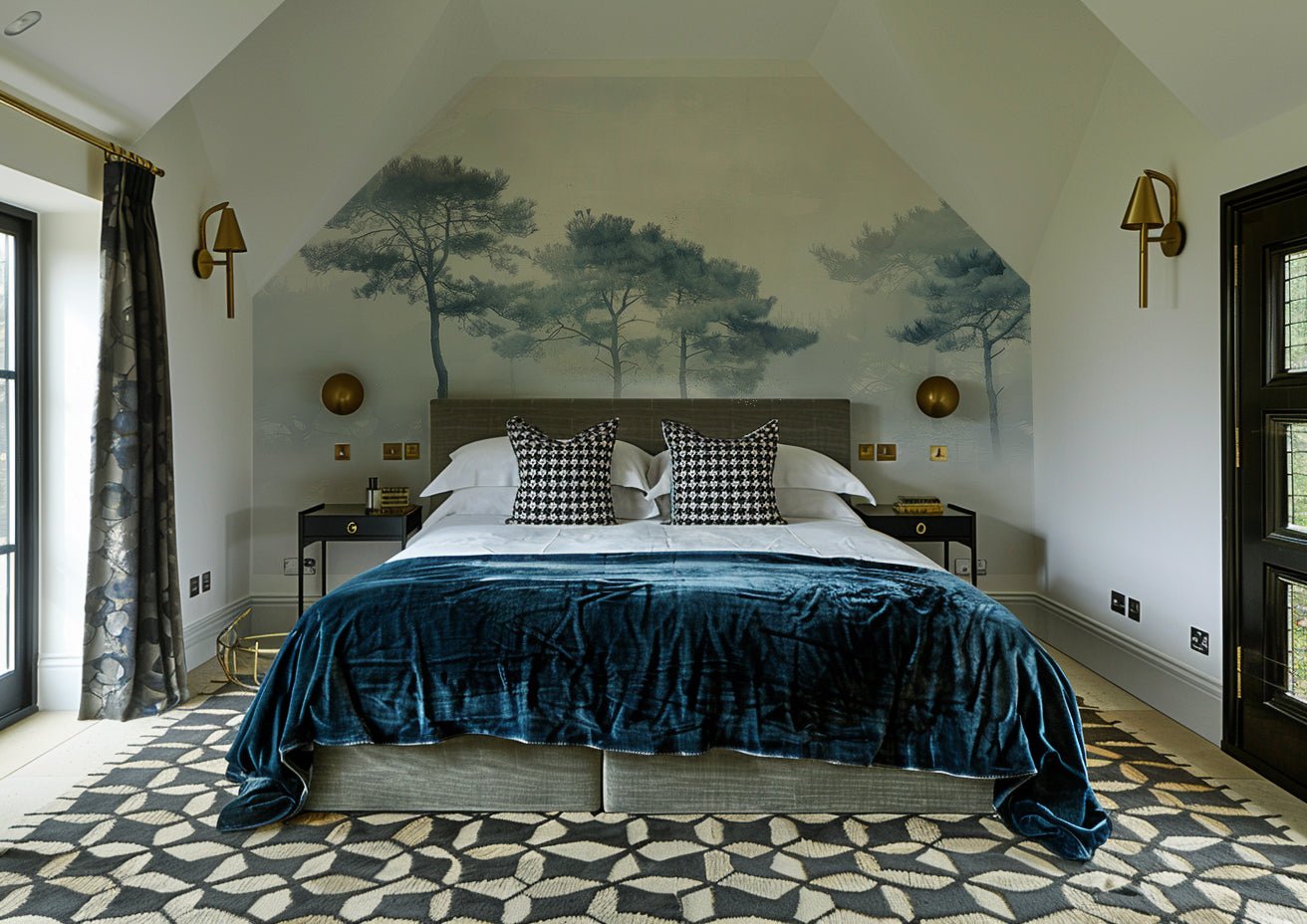 Chaque pan du décor est une célébration de la simplicité et de la beauté. Les arbres, dessinés avec précision, semblent onduler au gré d'une brise légère. L'illusion de profondeur transforme les murs en une fenêtre ouverte sur un paysage serein. C'est une vision qui inspire le calme et invite à la relaxation.