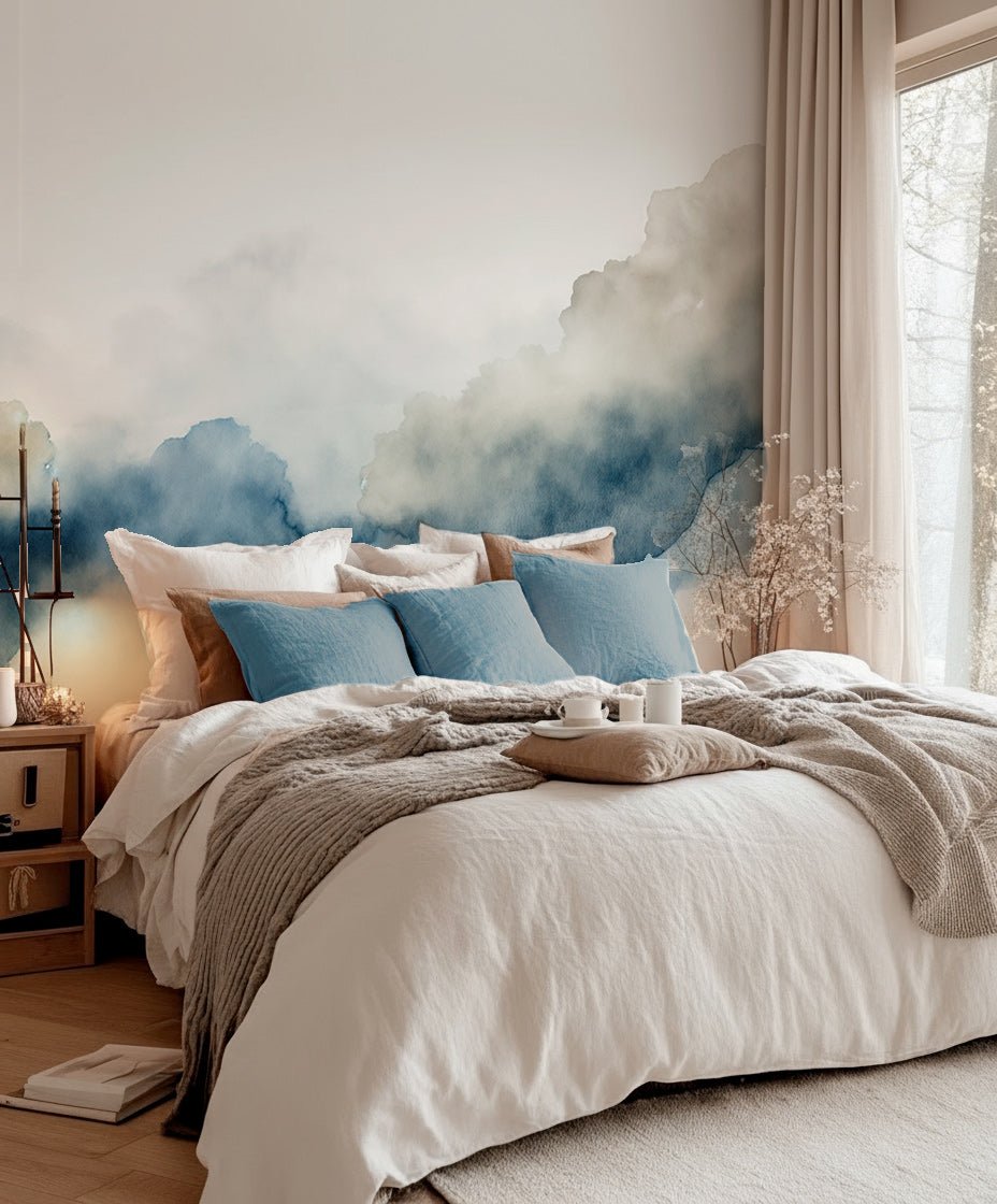 Offrez à vos murs une parenthèse visuelle avec Couleurs de l’air – Papier peint panoramique. Inspirée des mouvements d’aquarelle, cette création diffuse une ambiance vaporeuse et raffinée. Les teintes de bleu et de gris se fondent dans un jeu de transparences subtil.