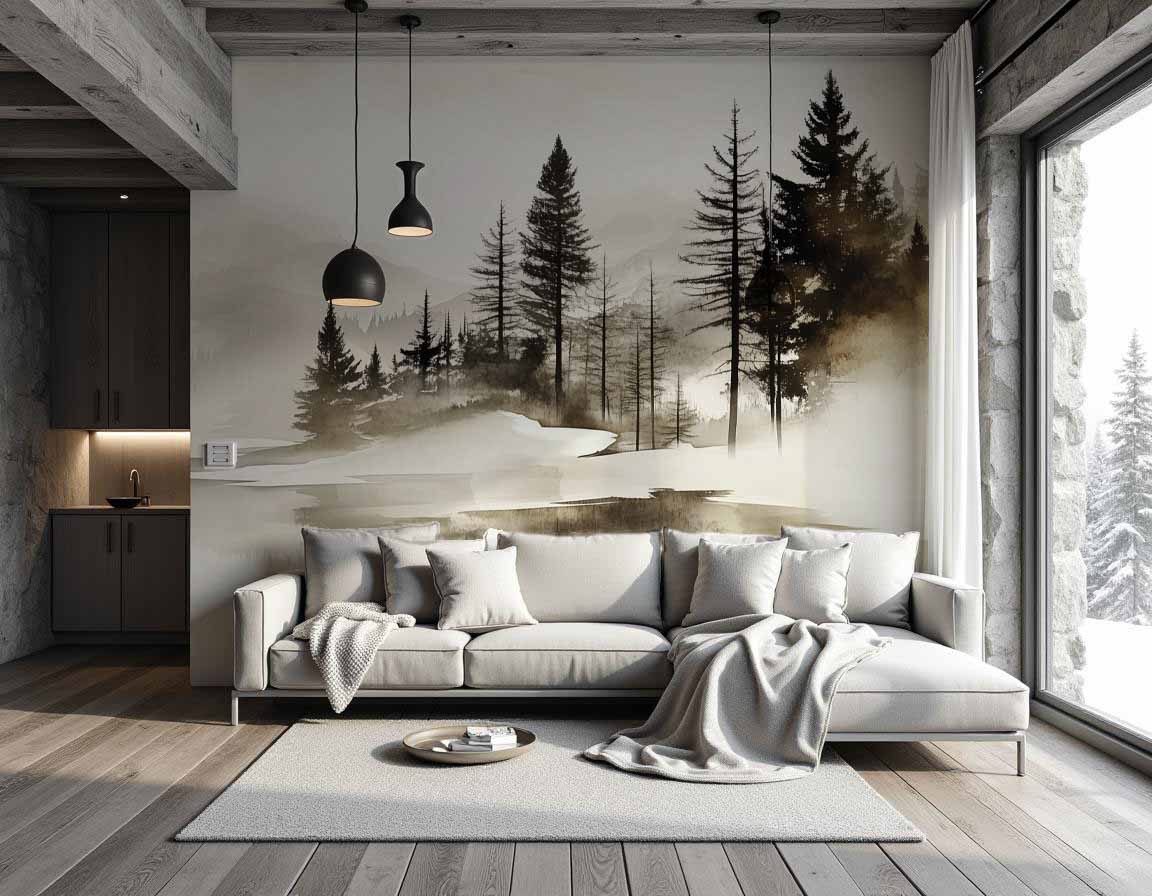Invitez la nature chez vous avec Silence des Bois, une fresque murale poétique et enveloppante.
