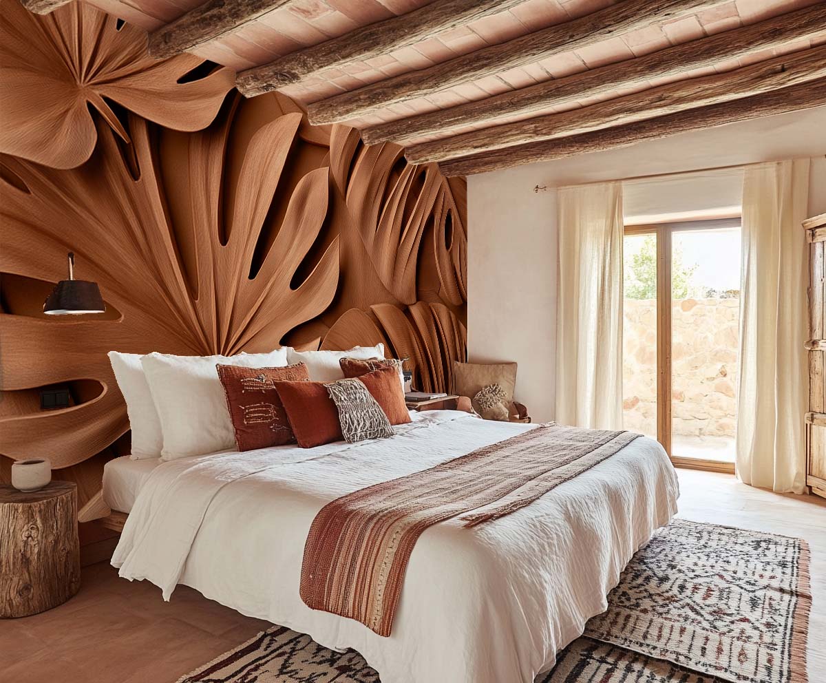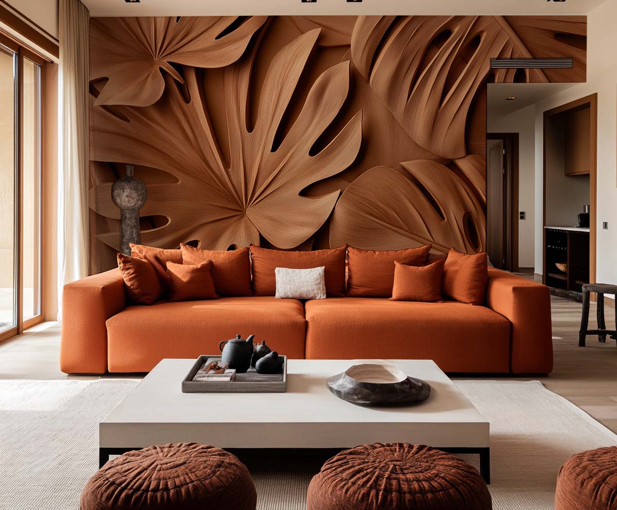 Feuilles exotiques terracotta : Papier peint effet 3D - Illulart: Papier peint panoramique