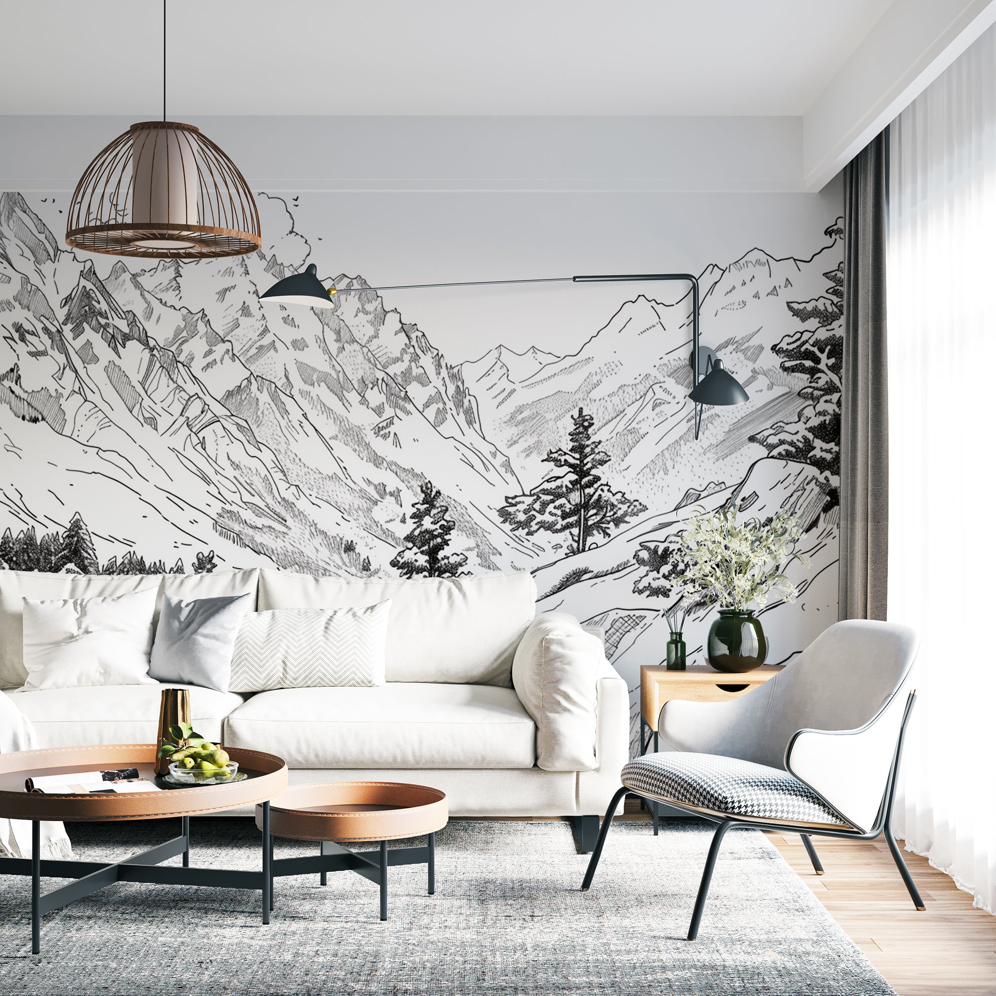 Adoptez 'Nature Graphique' pour créer un espace captivant, où le charme de la nature rencontre la pureté du design graphique.