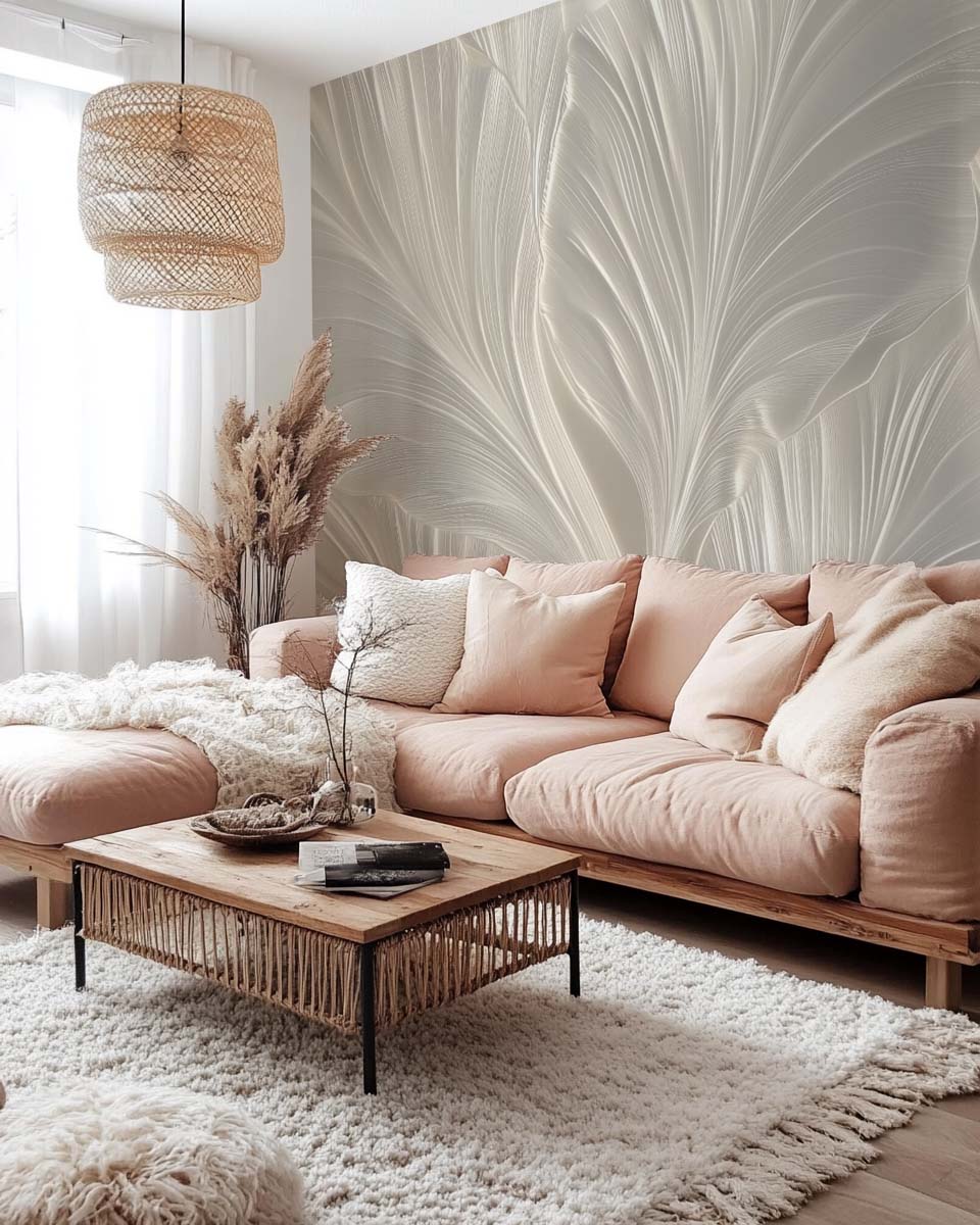 Le papier peint panoramique Crème de Feuillage sublime vos espaces avec son relief subtil et ses tons crème apaisants. Son design texturé apporte une touche élégante et sophistiquée à tout intérieur, qu’il s’agisse d’un salon ou d’une chambre. Disponible en trois finitions de haute qualité, il s’adapte à vos besoins spécifiques :