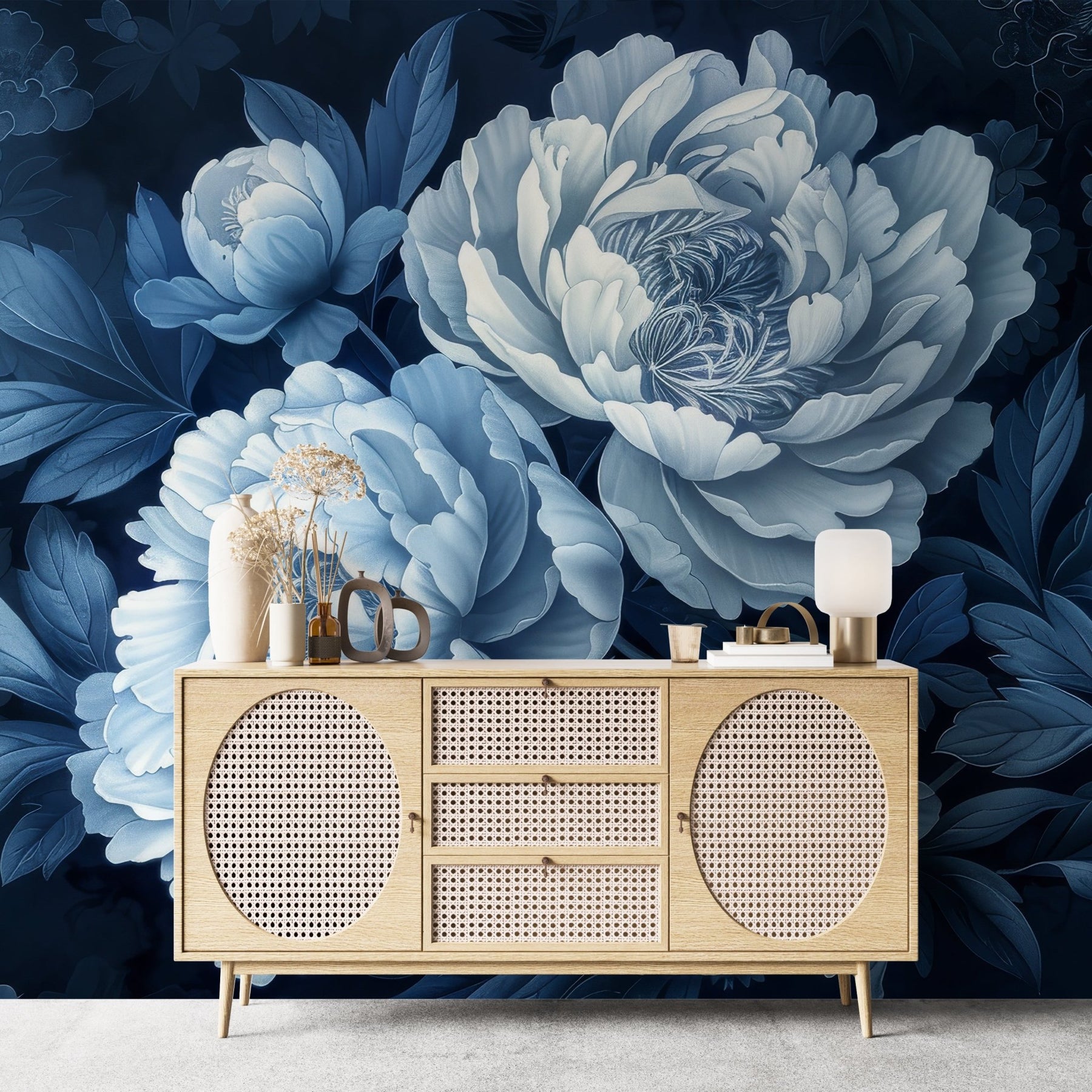 Transformez votre espace avec Élégance des Pivoines en Bleu Nuit, et profitez d'un intérieur élégant et harmonieux.