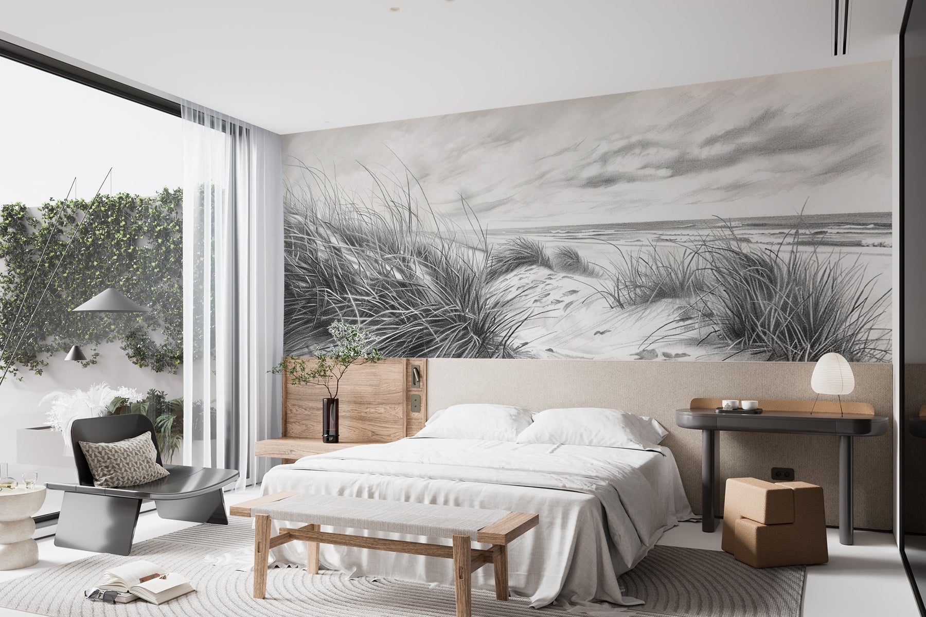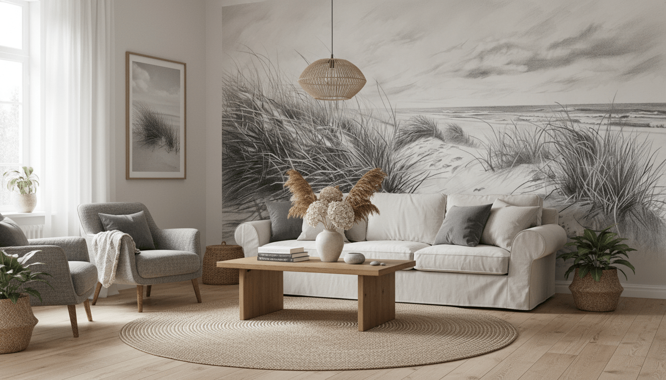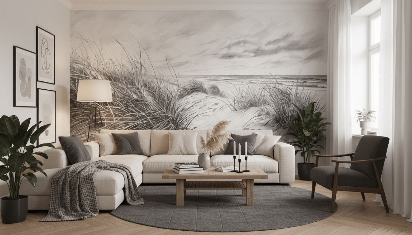 Notre Papier Peint Panoramique "Mélodie des Dunes" est une célébration de la beauté épurée des paysages côtiers. Ce tableau mural en noir et blanc saisit l'essence tranquille des dunes de sable, où chaque grain semble jouer une note de la mélodie apaisante de la mer. C'est une pièce d'exception qui évoque la simplicité sophistiquée et le calme.