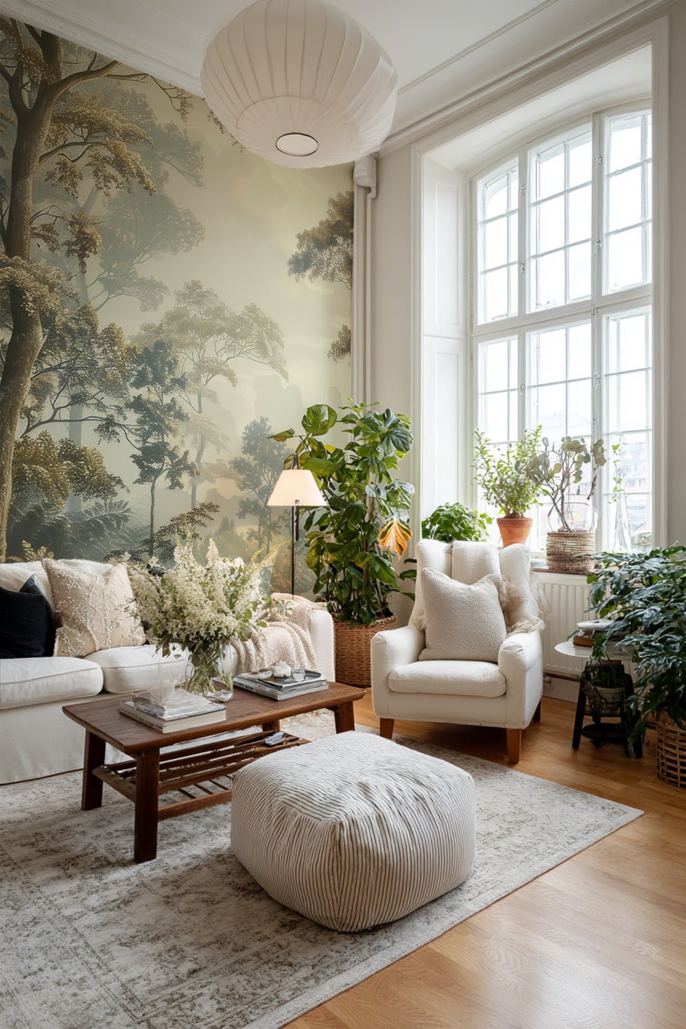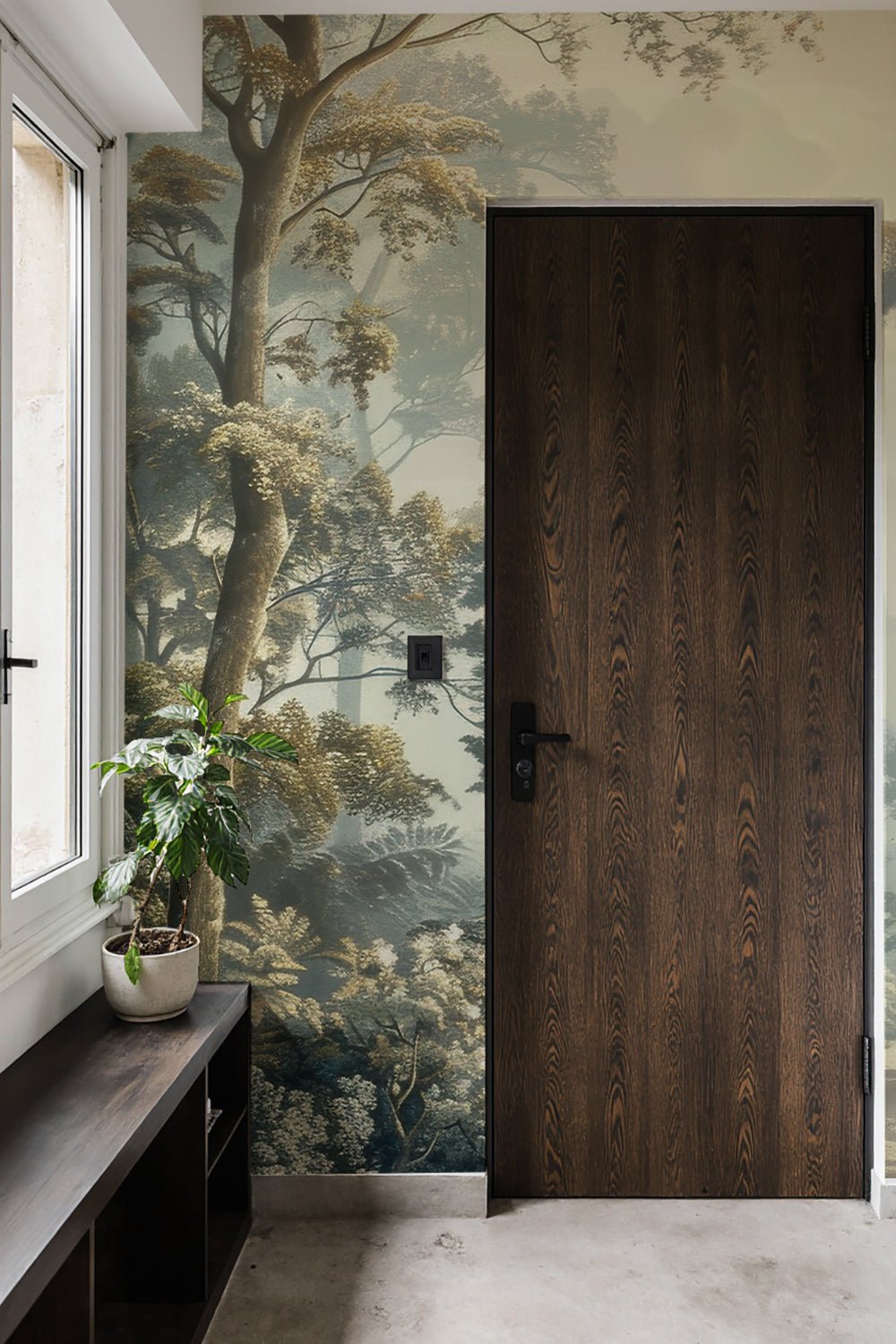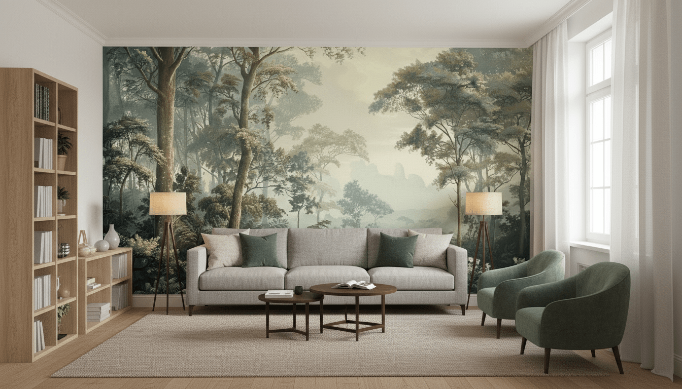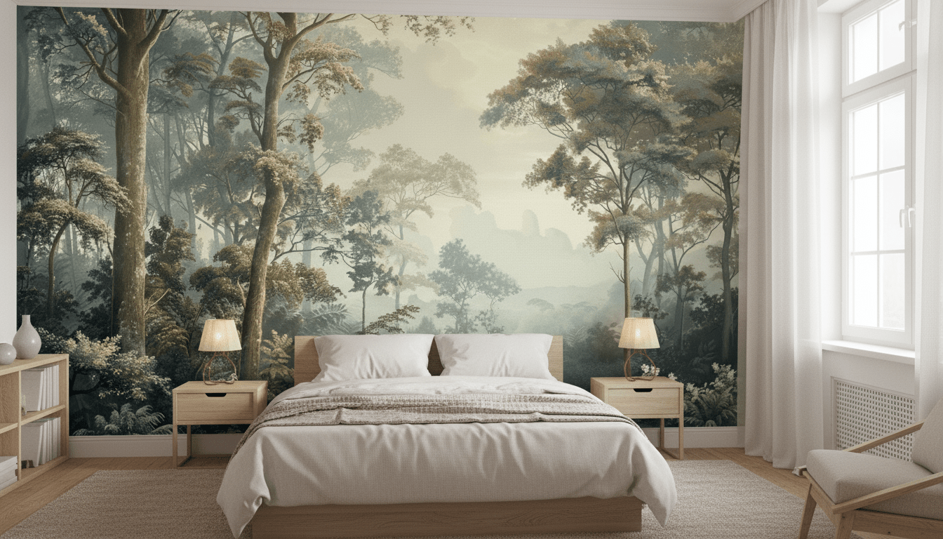 Le papier peint panoramique "Paysage Forestier Brumeux" transforme votre espace en une oasis de sérénité. La scène forestière, enveloppée de brume douce, évoque une ambiance apaisante et mystérieuse. Chaque détail des arbres majestueux et des feuillages délicats est rendu avec une précision captivante, créant une immersion totale dans la nature.