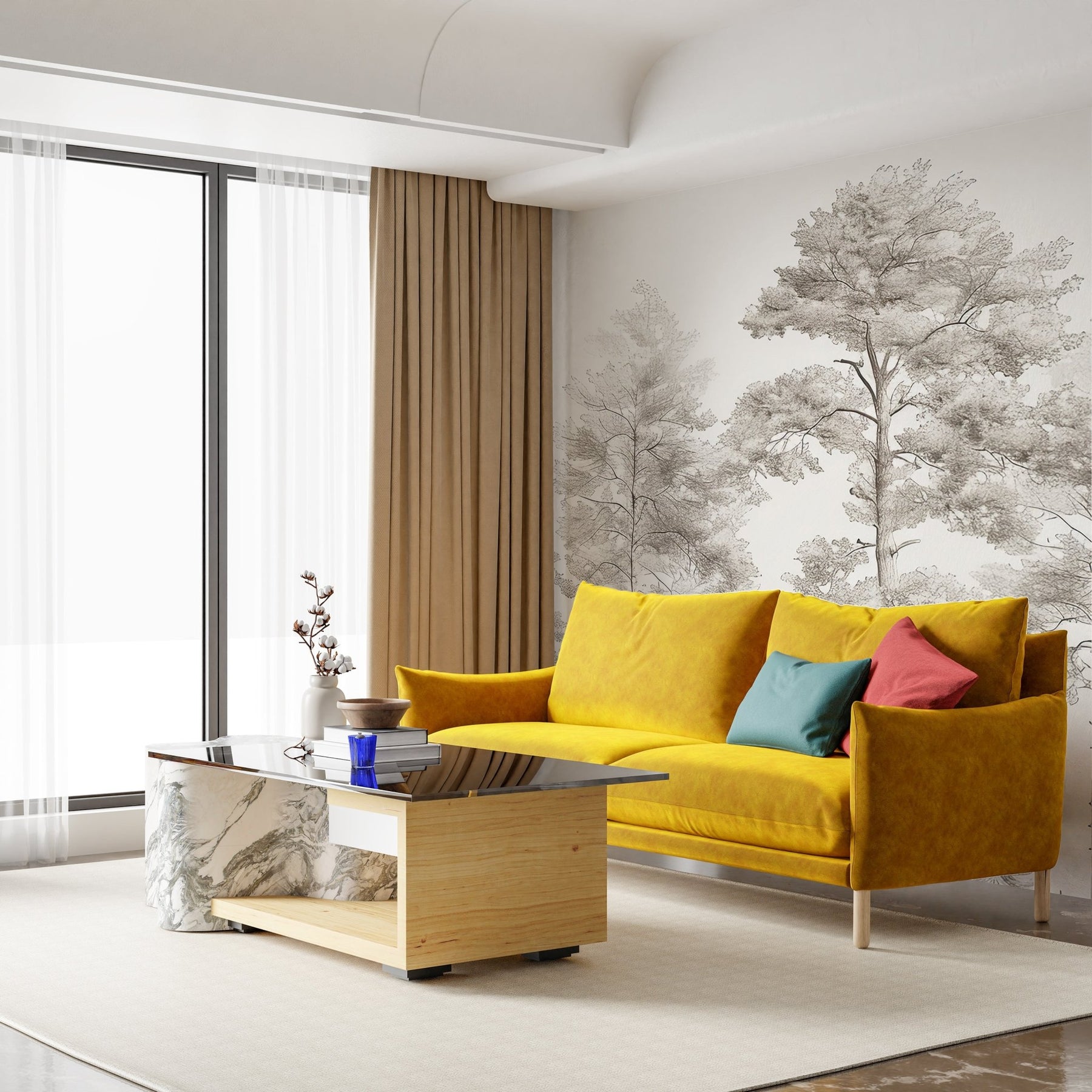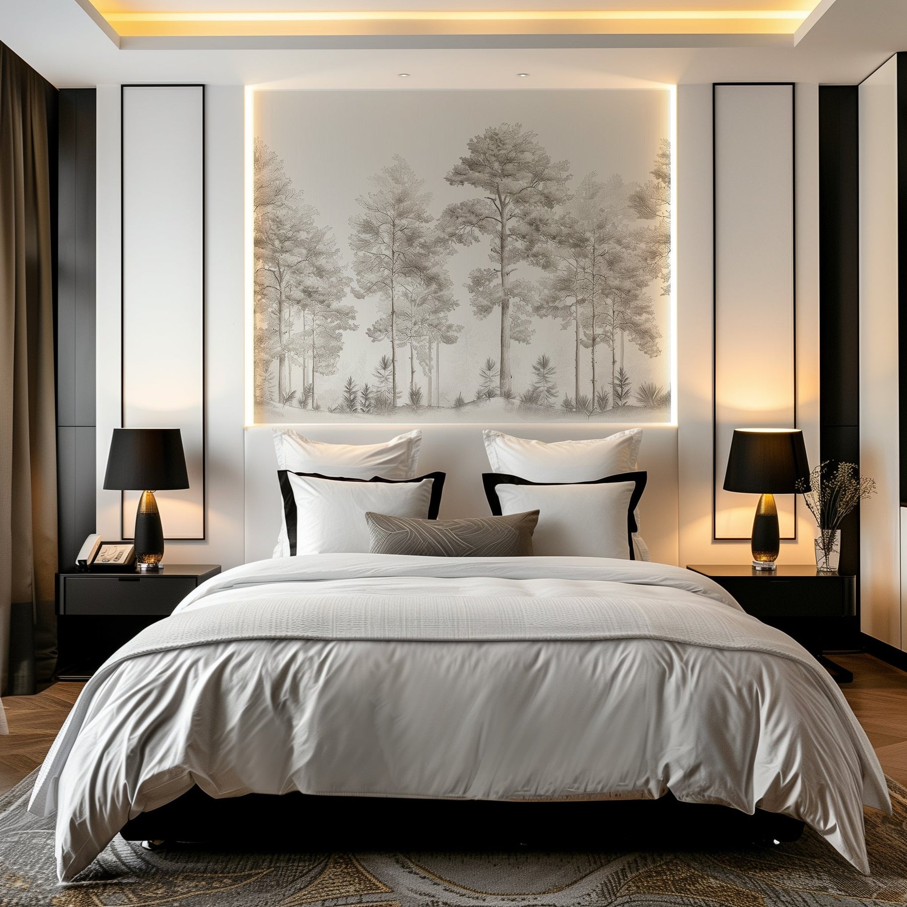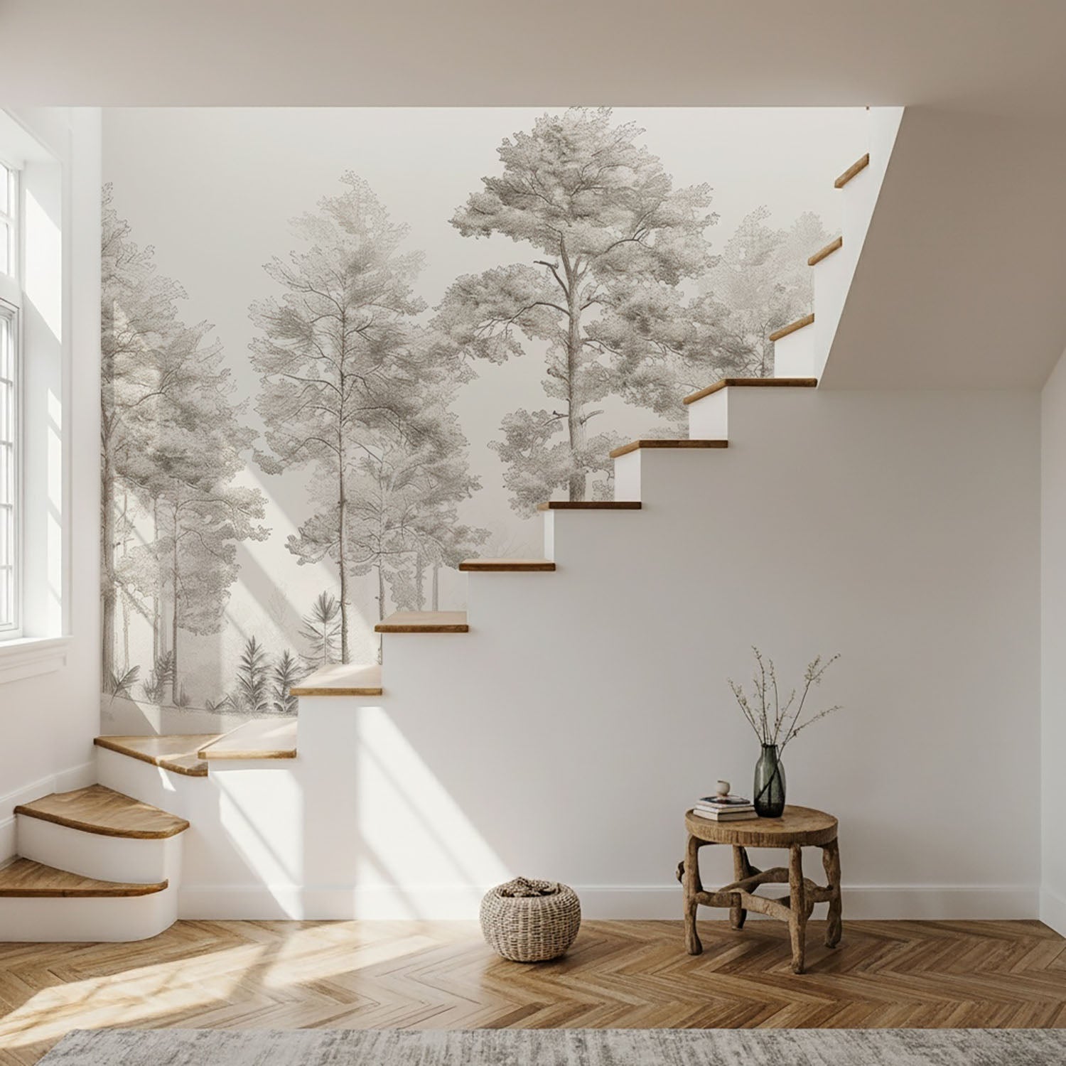 Découvrez le papier peint panoramique "Douceurs des bois - Arbres en Beige et Gris", une véritable invitation à la sérénité et à la contemplation. Ce design raffiné, illustré de délicats dessins d'arbres, transforme vos murs en une œuvre d'art naturelle.