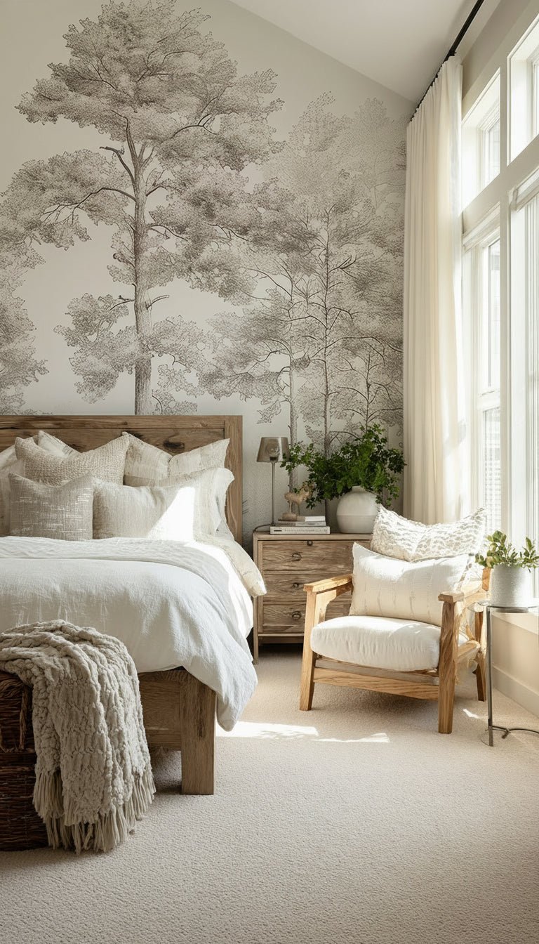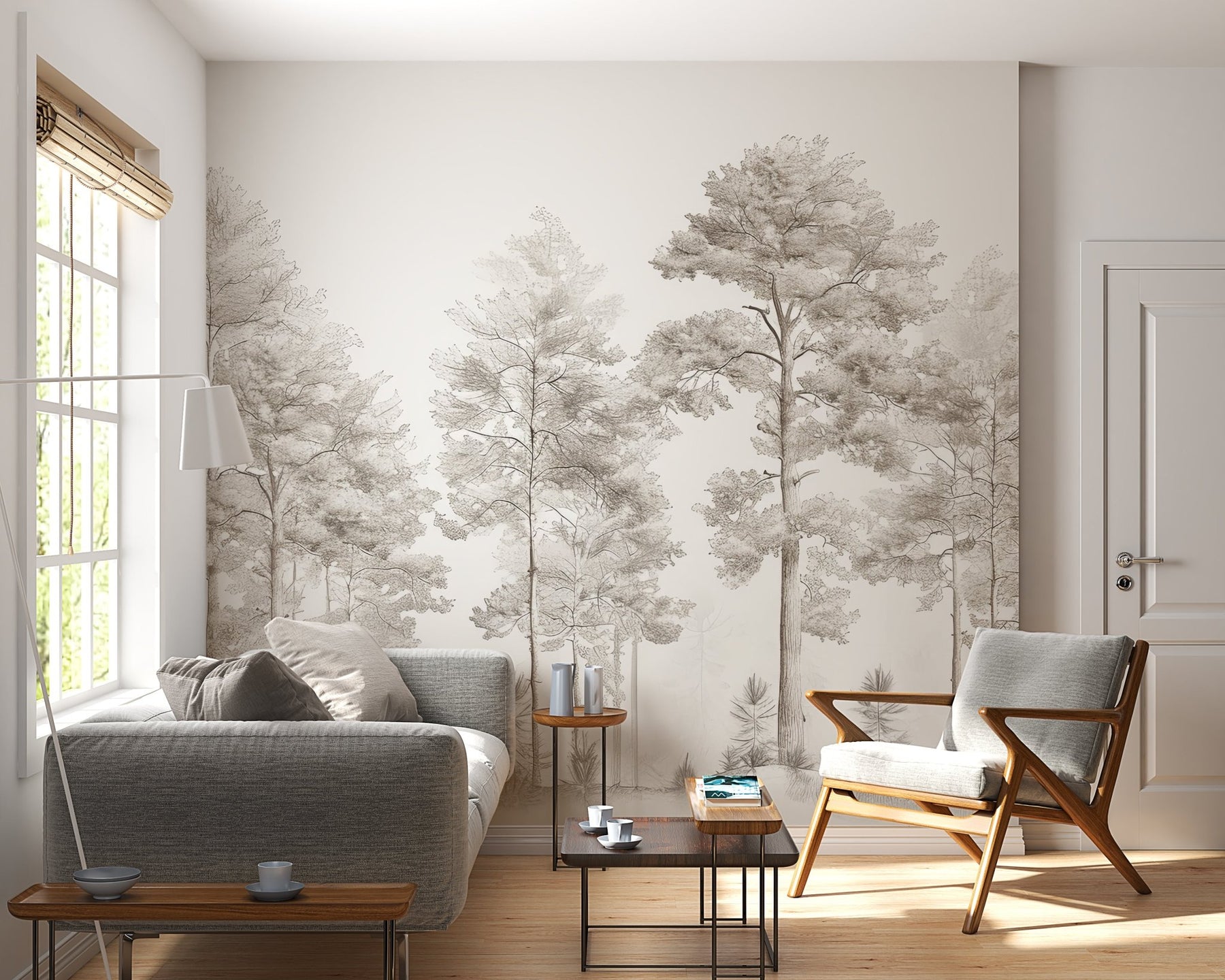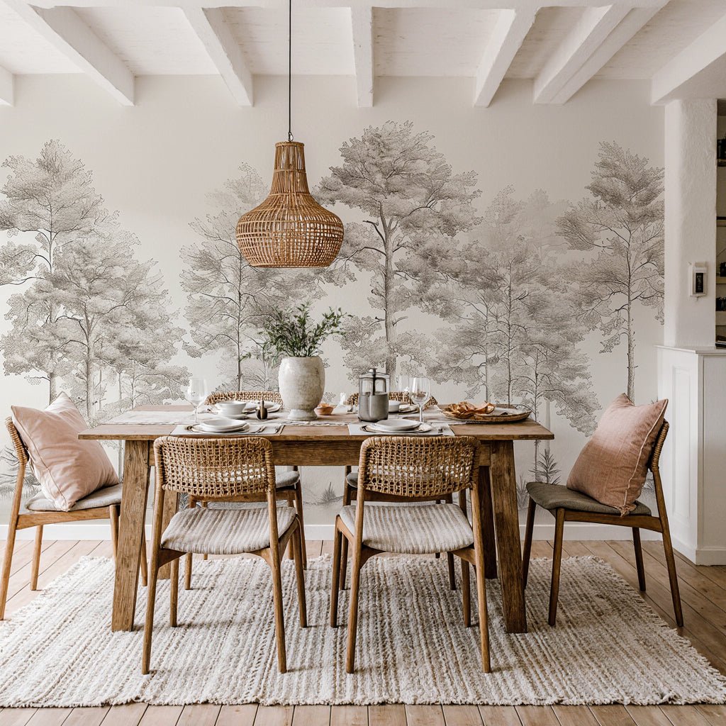 Douceurs des bois - Papier Peint Panoramique Arbres en Beige et Gris