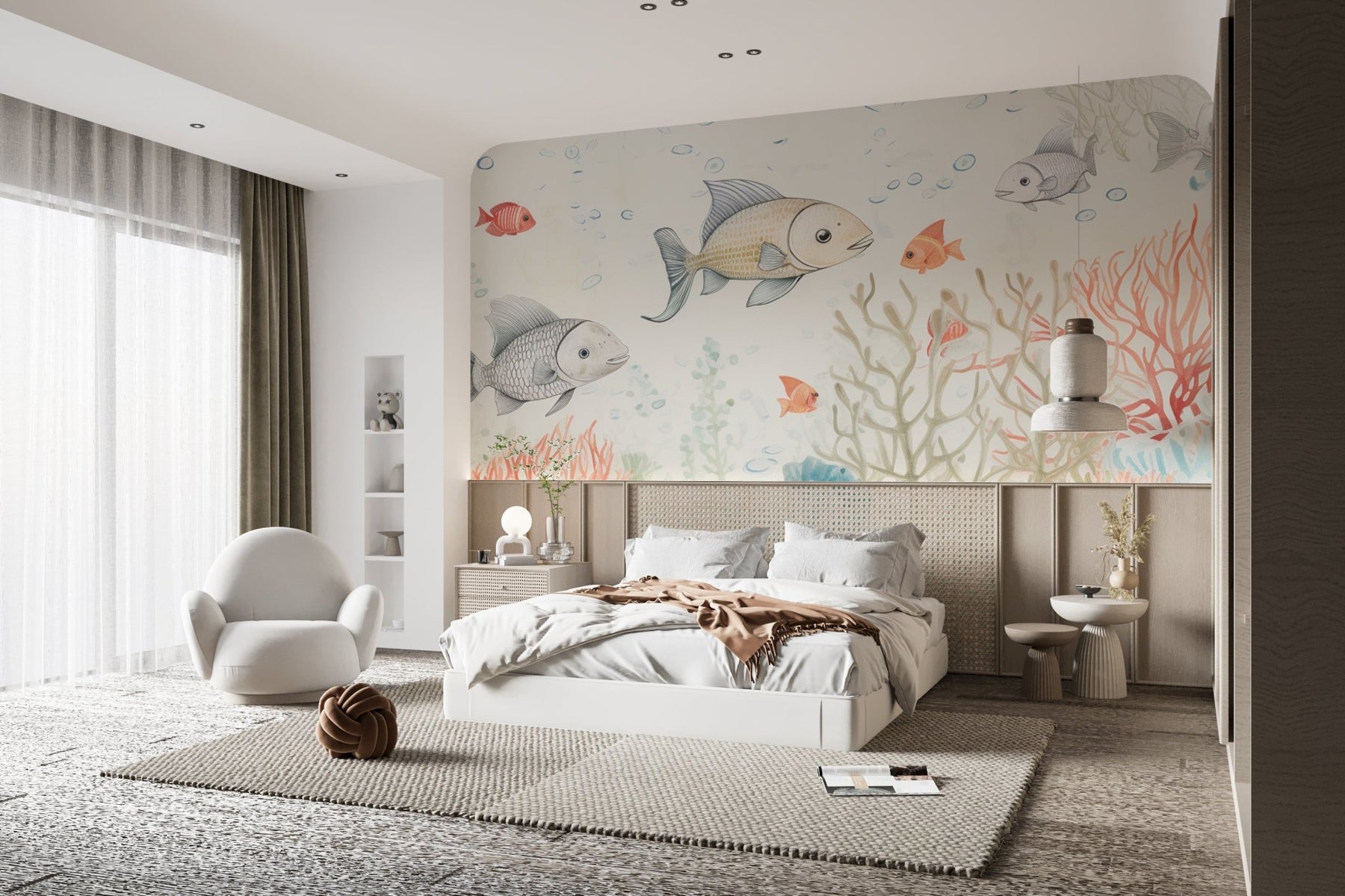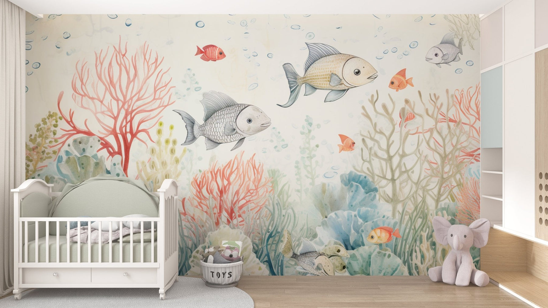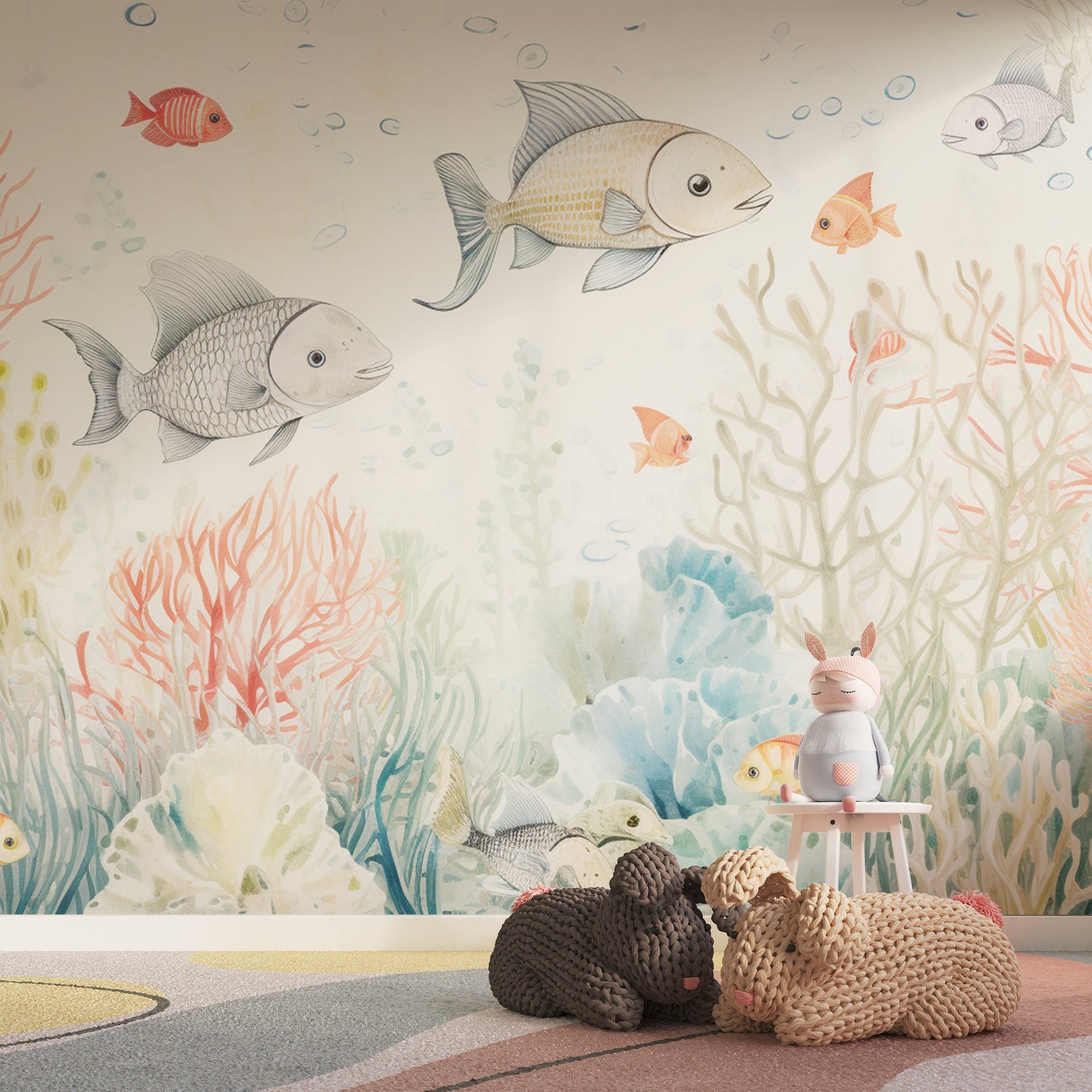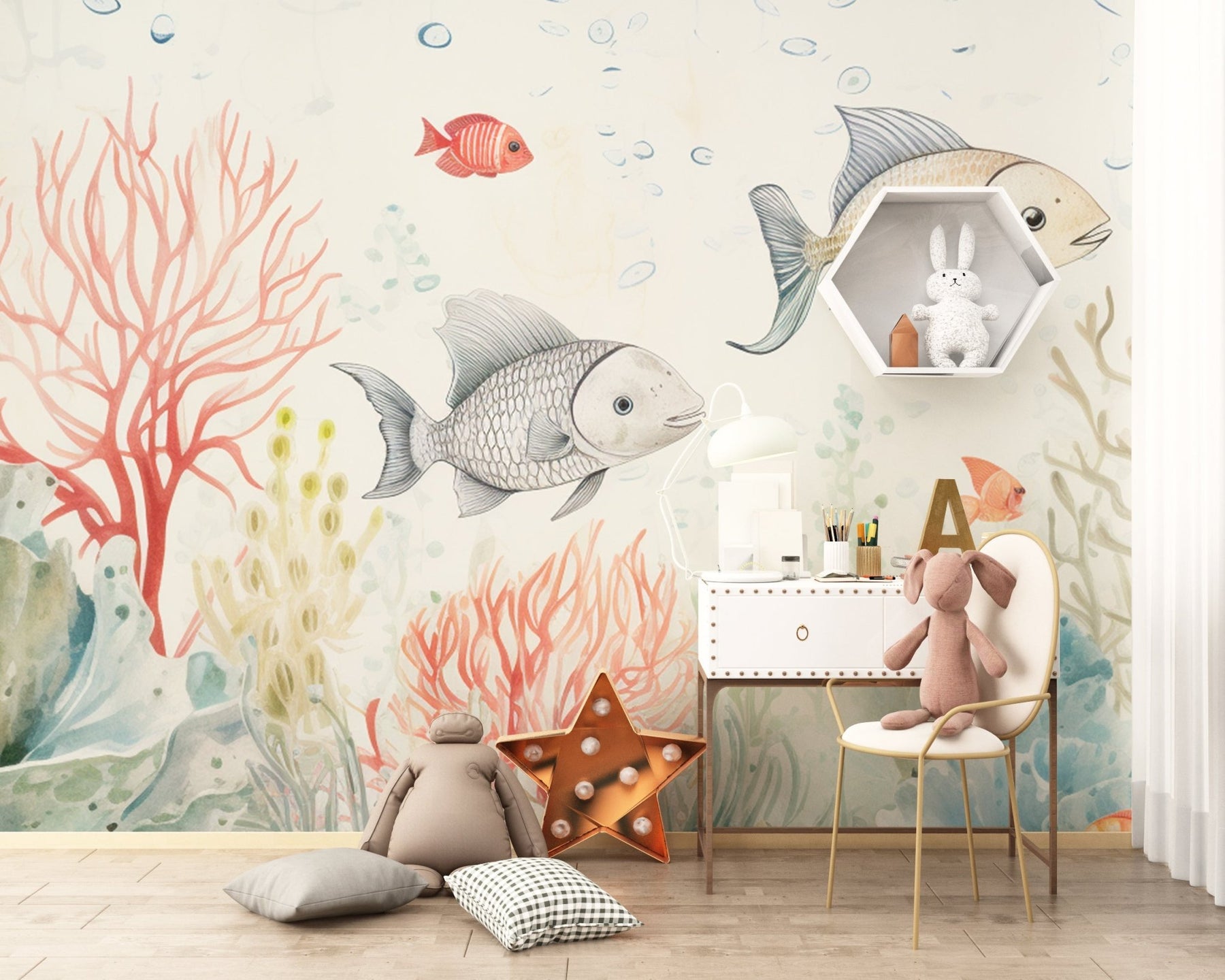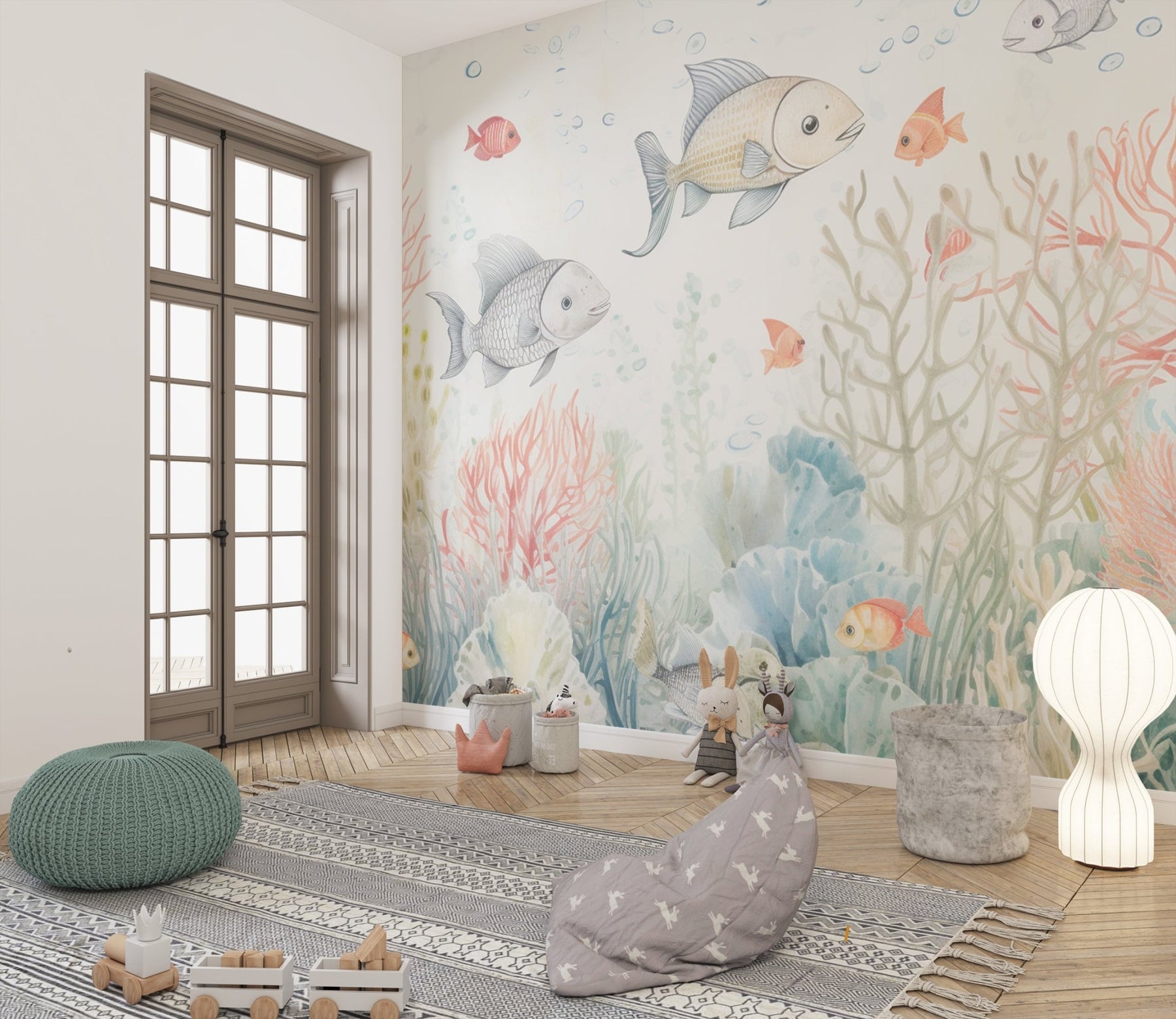 Immergez la chambre de votre enfant dans le monde enchanteur sous-marin avec notre Papier Peint Récif Corallien. Cette murale délicate et colorée, peinte dans des tons doux d'aquarelle, présente une scène vivante de la vie marine, avec des coraux ondoyants et des poissons tropicaux. C'est une invitation à la découverte et à l'émerveillement, parfaite pour stimuler l'imagination et la créativité des jeunes esprits. Ce décor mural apporte une touche de la merveille océanique à l'intérieur, créant une atmosphère apaisante et ludique pour les chambres d'enfants, les salles de jeux ou les salles de bains.