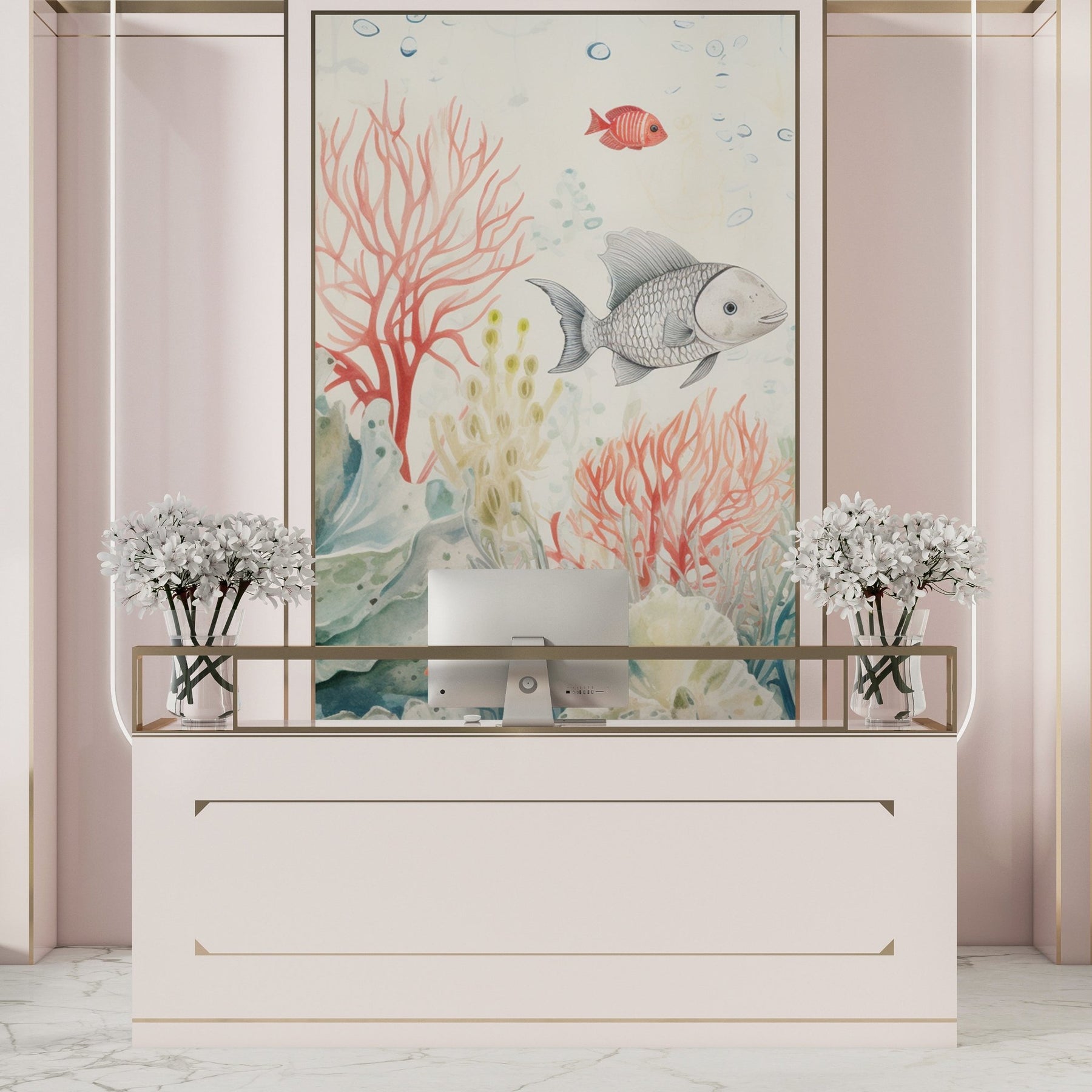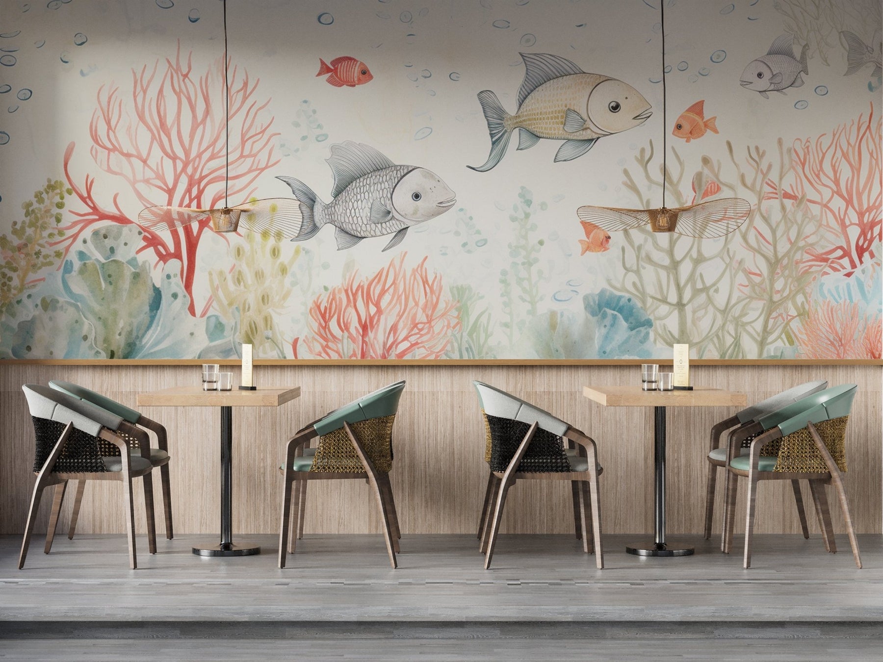 Recif Corallien en Aquarelle - Illulart: Papier peint panoramique