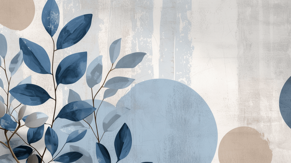 Ce papier peint panoramique intitulé "Sérénité Bleutée" est une invitation à la quiétude. Il présente une composition botanique stylisée avec des feuilles ovales dans des nuances de bleu profond et de gris sur un fond texturé évoquant un mélange subtil de béton ciré et de toile de lin. Les cercles abstraits en ton sur ton ajoutent une dimension contemporaine à l'ensemble, tandis que les touches de blanc apportent de la lumière, renforçant l'effet d'espace et de fraîcheur. Ce papier peint est une œuvre d'art mural qui transformera toute pièce en un havre de paix moderne et élégant.