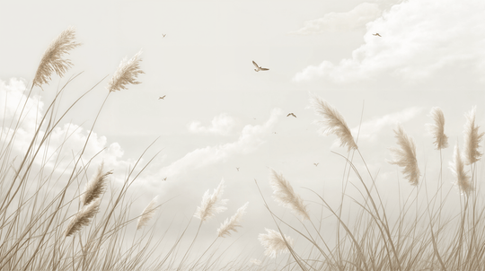 Apportez une touche de tranquillité à votre intérieur avec notre papier peint panoramique "Sérénité Naturelle". Ce design élégant, représentant des herbes sauvages ondulant sous une brise légère, crée une atmosphère apaisante et naturelle.