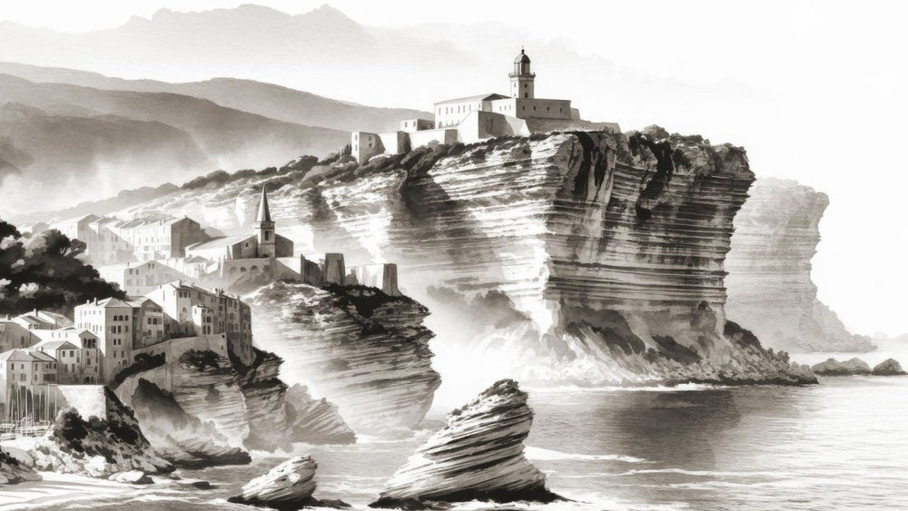 Évadez-vous sur les rivages pittoresques de la Méditerranée avec notre Papier Peint Paysage Méditerranéen inspiré des paysages Corse. Cette murale d'art aquarelle représente un village côtier niché sur des falaises majestueuses, où la mer rencontre le ciel en une harmonie de tons monochromes. Parfait pour apporter une touche de charme maritime vintage à votre intérieur, ce papier peint est une fenêtre ouverte sur les vues emblématiques de la côte, invitant à la tranquillité et à l'évasion.