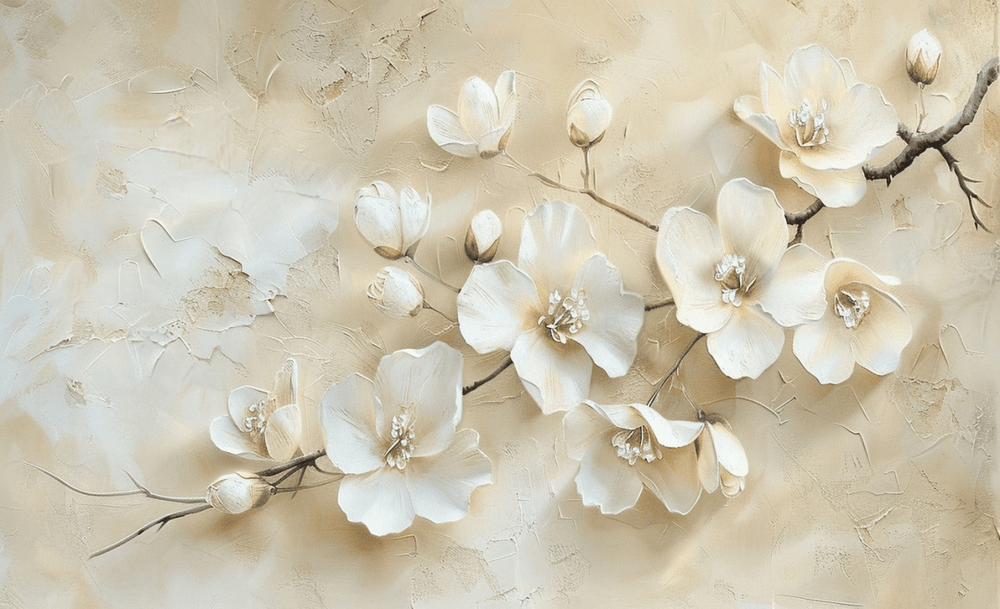 Le papier peint panoramique "Fleur de Magnolia : Simplicité et Éclat" capture la beauté intemporelle des magnolias en fleurs. Ses tons beiges et ses fleurs blanches délicates créent une atmosphère apaisante et raffinée.