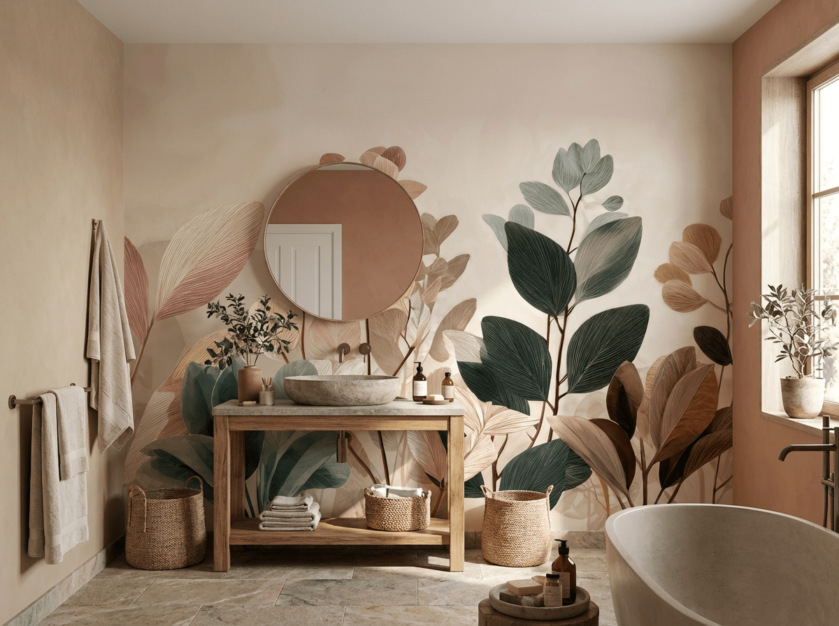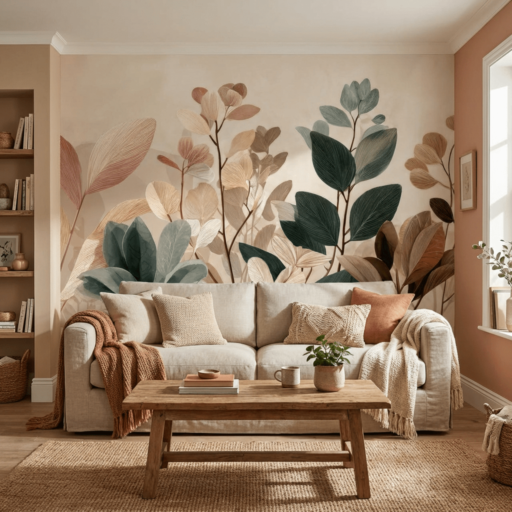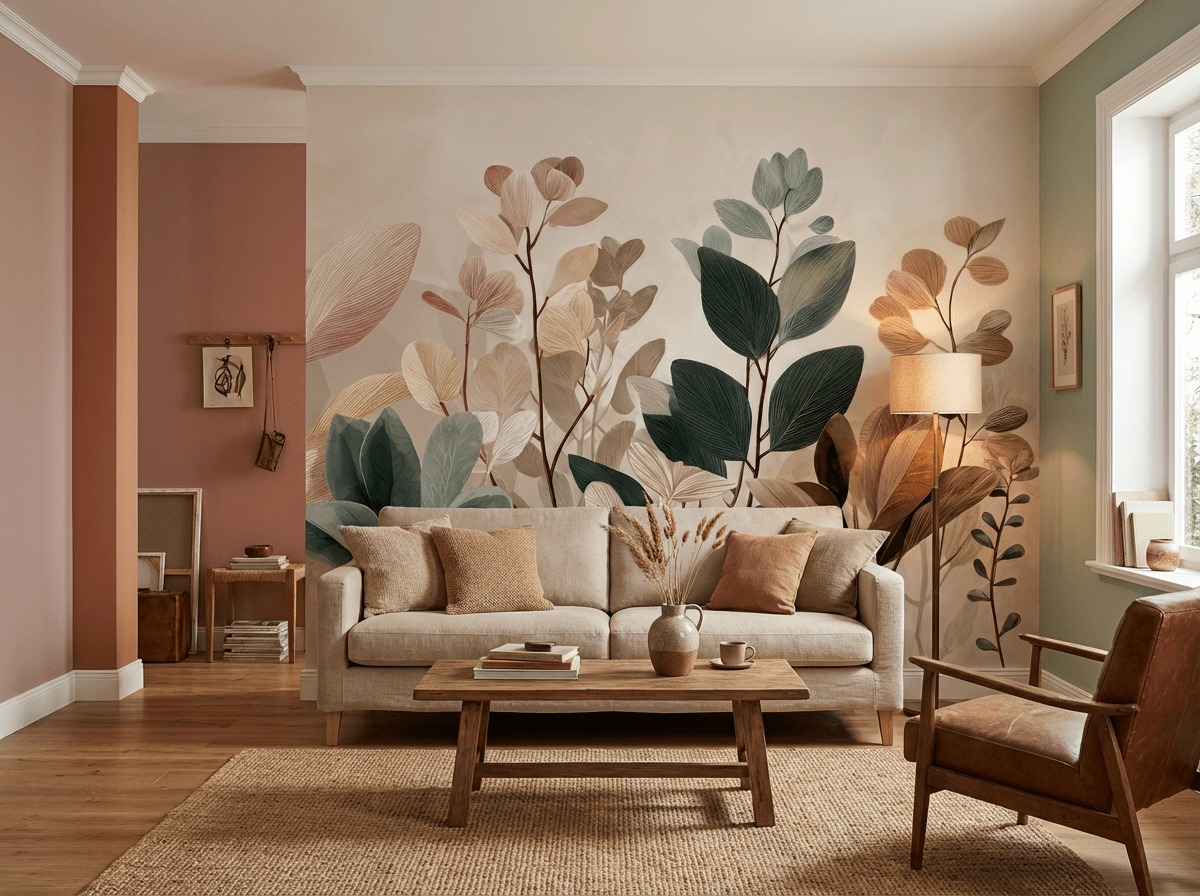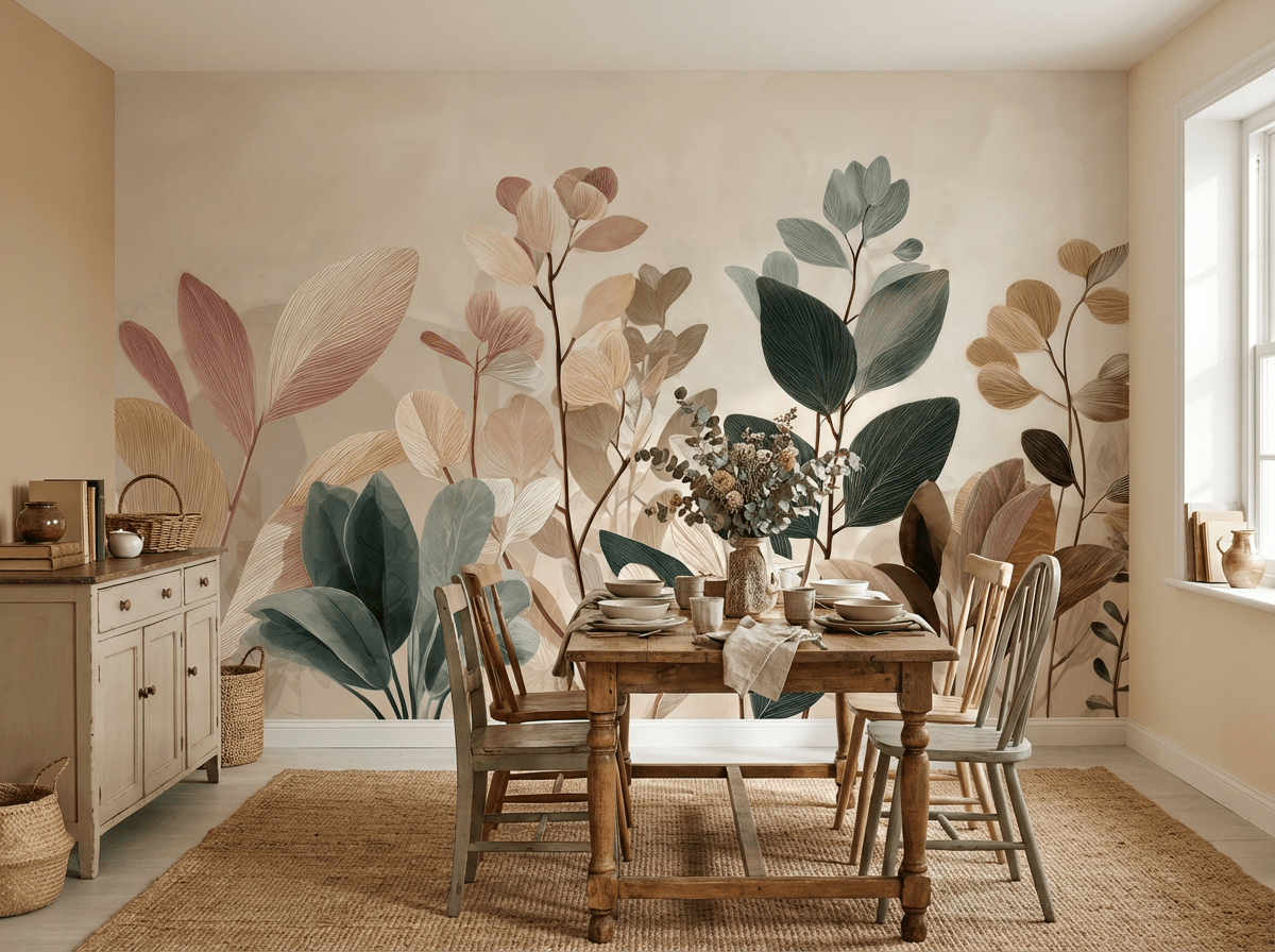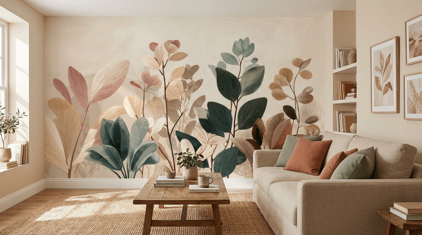 Le papier peint panoramique végétal Essence Botanique transforme votre intérieur avec douceur et modernité.