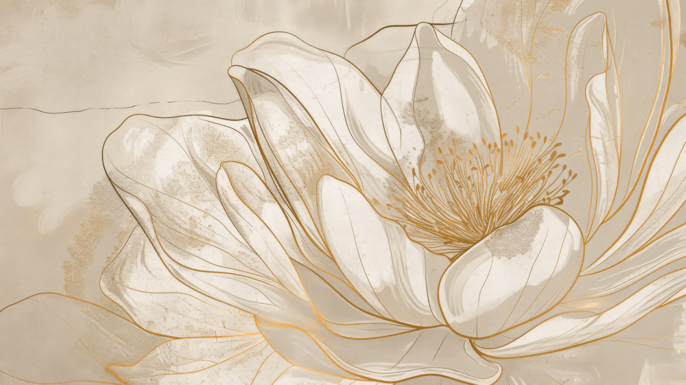 Magnolia doré - Volutes florales en or - Illulart: Papier peint panoramique