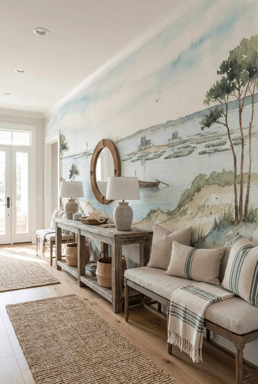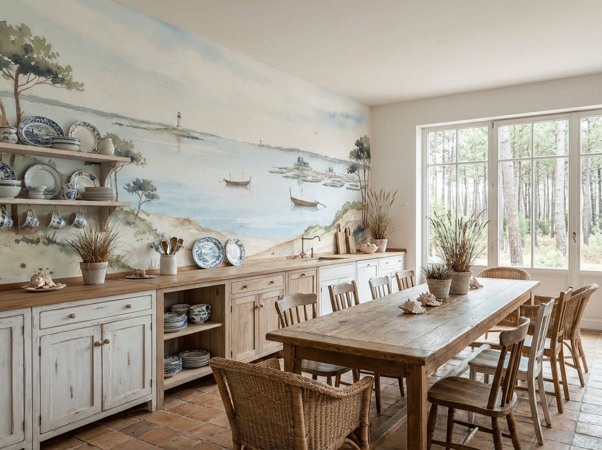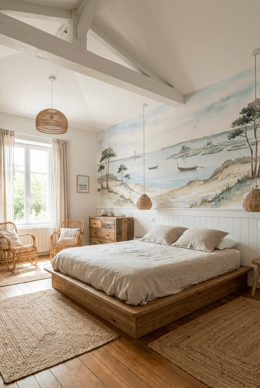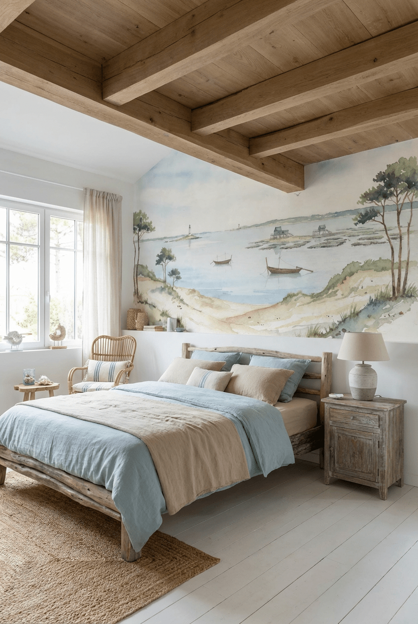 Ce décor convient particulièrement à un salon apaisant, une chambre parentale, une entrée lumineuse ou un espace de détente. Il apporte une note de voyage discrète et un souffle d’air marin sans surcharger l’intérieur.