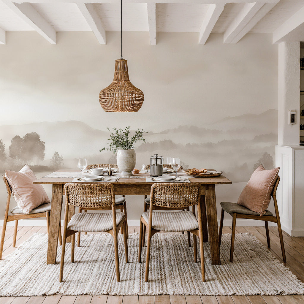 Matin calme – Papier peint paysage brumeux minimaliste et doux en beige