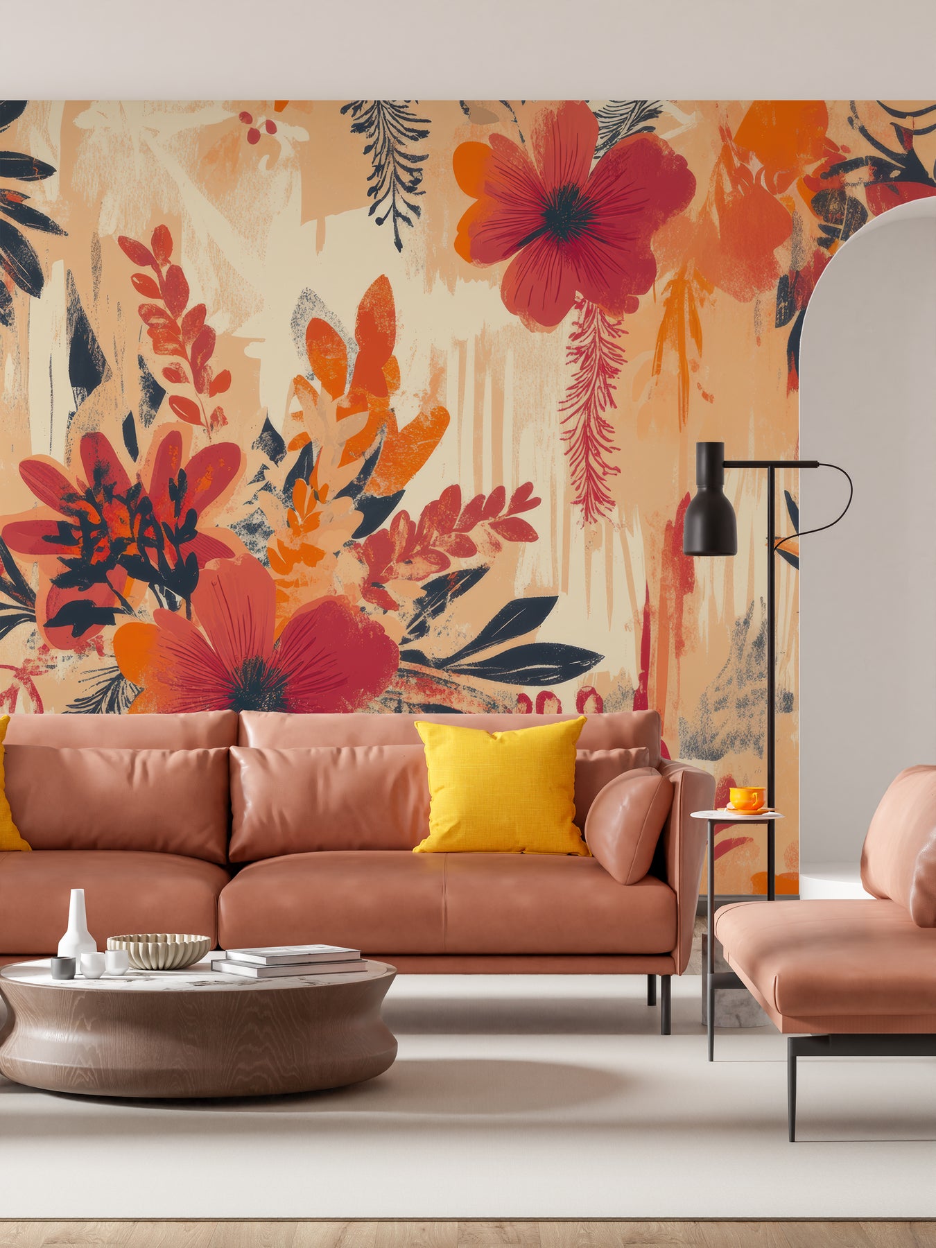 Le papier peint "Explosion Florale - Motifs Bohèmes en Teintes Épicées" apporte une énergie vive et chaleureuse à vos espaces. Ses motifs floraux dynamiques et sa palette de rouges, oranges et noirs créent une atmosphère bohème audacieuse. Ce modèle est idéal pour ceux qui cherchent à insuffler du caractère à leur intérieur tout en conservant une touche artistique. Disponible en trois finitions de haute qualité.