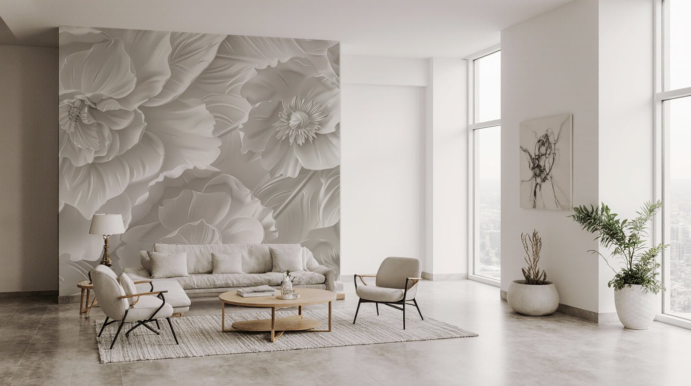 Delicatesse en Blanc : papier peint à motif de fleurs en 3D