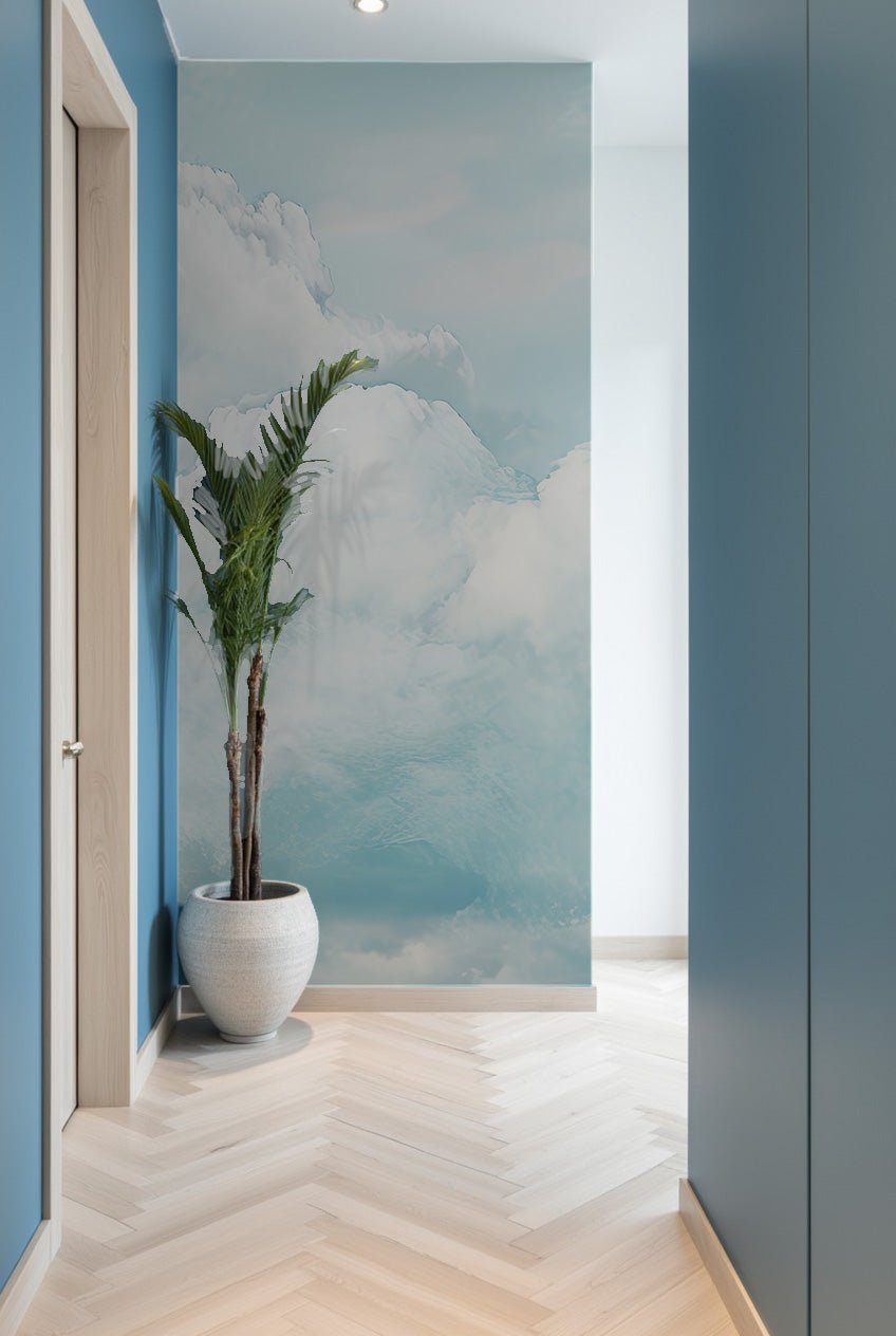 1. Évasion Visuelle : Les nuances subtiles de bleu et de blanc créent une atmosphère ouverte et respirante, transformant chaque pièce en un sanctuaire de paix. Laissez la fluidité de ce paysage céleste apporter une nouvelle dimension à votre environnement.