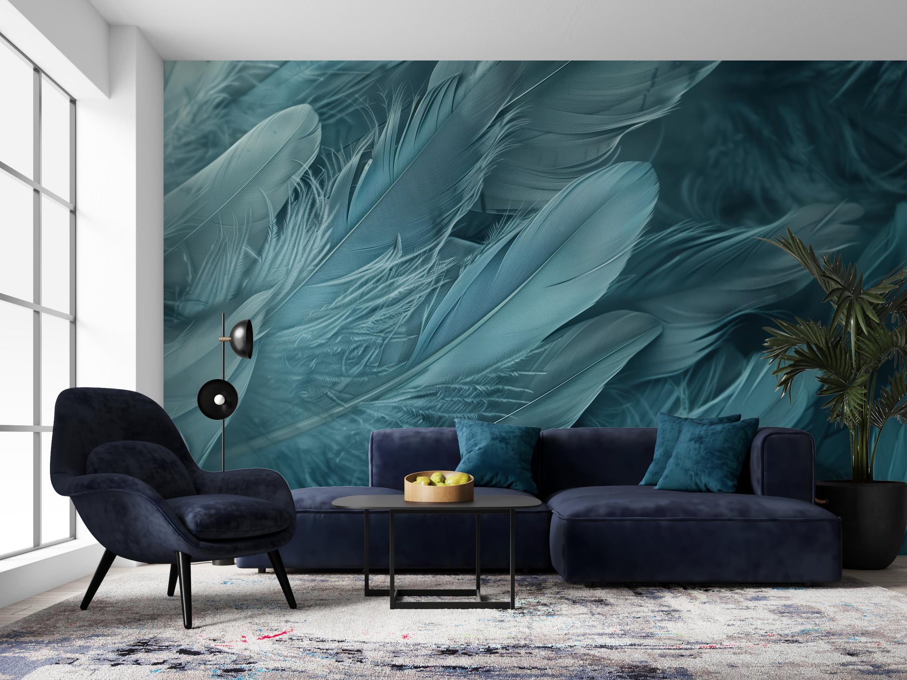 Mur de Plumes - Papier Peint Panoramique Élégant en Bleu Cendré