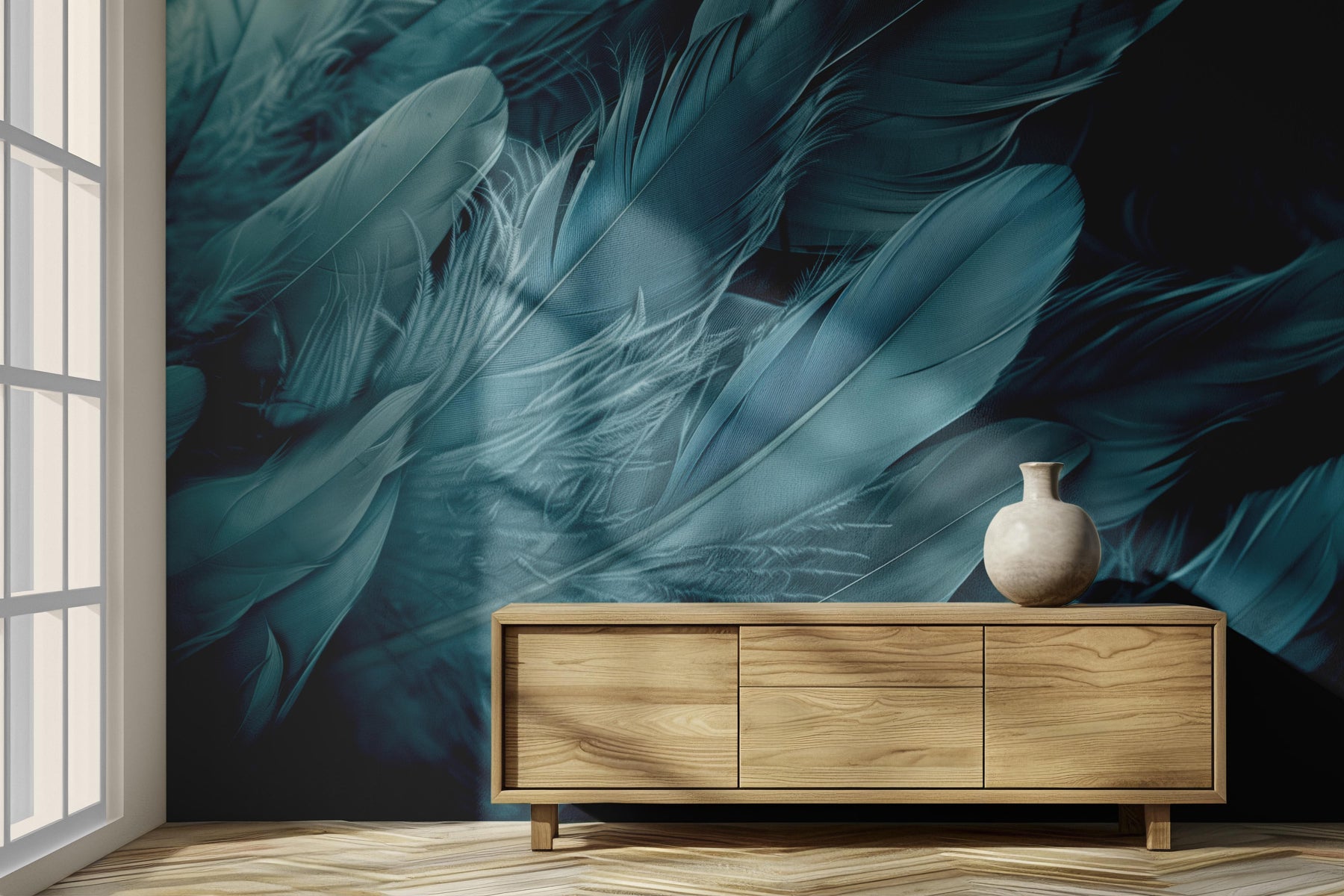 Offrez à votre intérieur une atmosphère apaisante avec le papier peint panoramique Mur de Plumes. Ses nuances de bleu cendré et ses textures délicates créent une sensation de légèreté et d’élégance. Idéal pour une chambre, un salon ou un espace de détente, ce design apporte une touche poétique et raffinée à votre décoration.