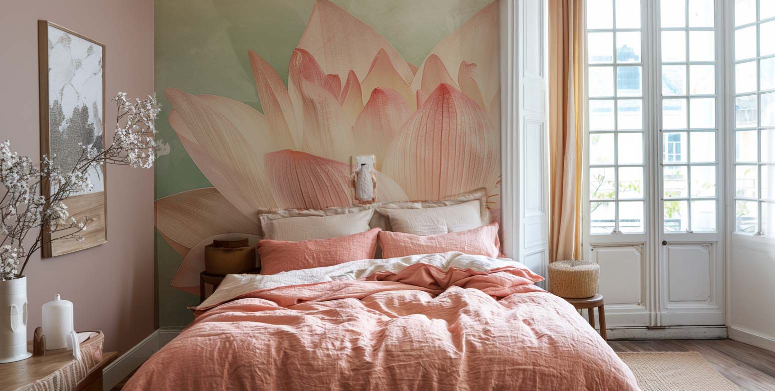 Laissez la beauté du lotus illuminer votre intérieur et invitez la nature chez vous avec une fresque murale empreinte de poésie.