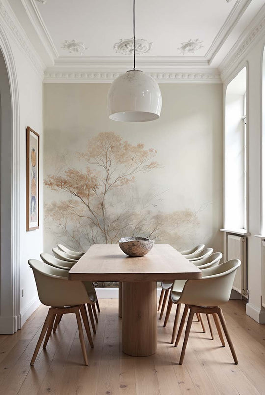 En conclusion, le 'Papier Peint Arbres de Brume' est une promesse d'élégance. Il insuffle un air de luxe discret à votre décoration.