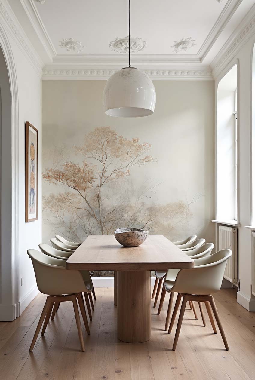Le 'Papier Peint Arbres de Brume' est un souffle poétique. Il transforme les murs en scène naturelle. De plus, les oiseaux en vol ajoutent du mouvement. Ils traversent le paysage, légers et gracieux. Ainsi, le papier peint devient un hymne à la liberté. Chaque élément, minutieusement choisi, joue son rôle. Les arbres sont des sentinelles silencieuses. La brume, un voile de mystère.