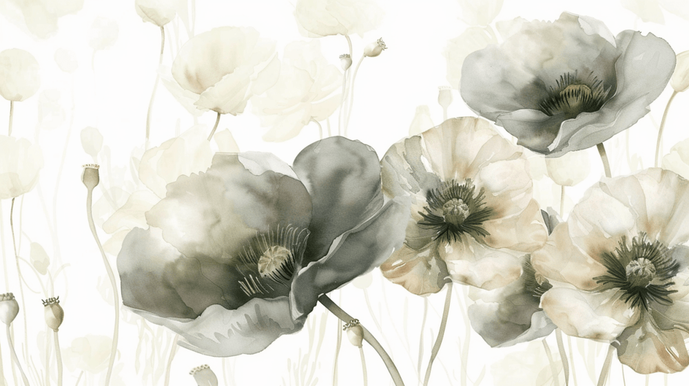 Délice Printanier : Coquelicots Verts et Crème - Illulart: Papier peint panoramique