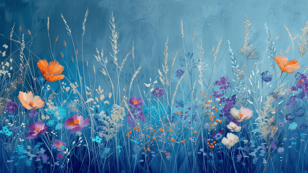 Harmonie Champêtre: Papier Peint Panoramique Floral Bleu & Orange - Illulart: Papier peint panoramique