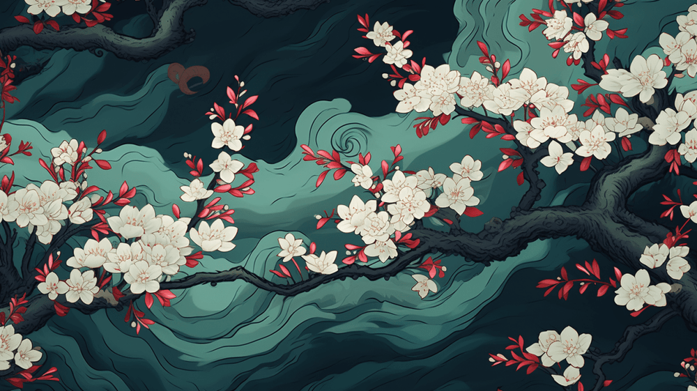 Élégance Asiatique : Papier Peint Panoramique Floral - Illulart: Papier peint panoramique